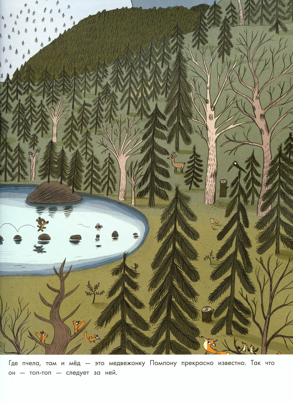 Где пчела - там и мёд! Это медвежонок Помпон прекрасно усвоил, поэтому, когда мимо берлоги летит с весёлым жужжанием пчёлка, он не раздумывая бросается за ней. А как же папа? Обнаружив пропажу любимого сына, он готов в своих поисках дойти до края света, покинуть родной лес, обежать весь город - да что там! - даже спеть на сцене оперного театра!| Издательство | ИД КомпасГид |