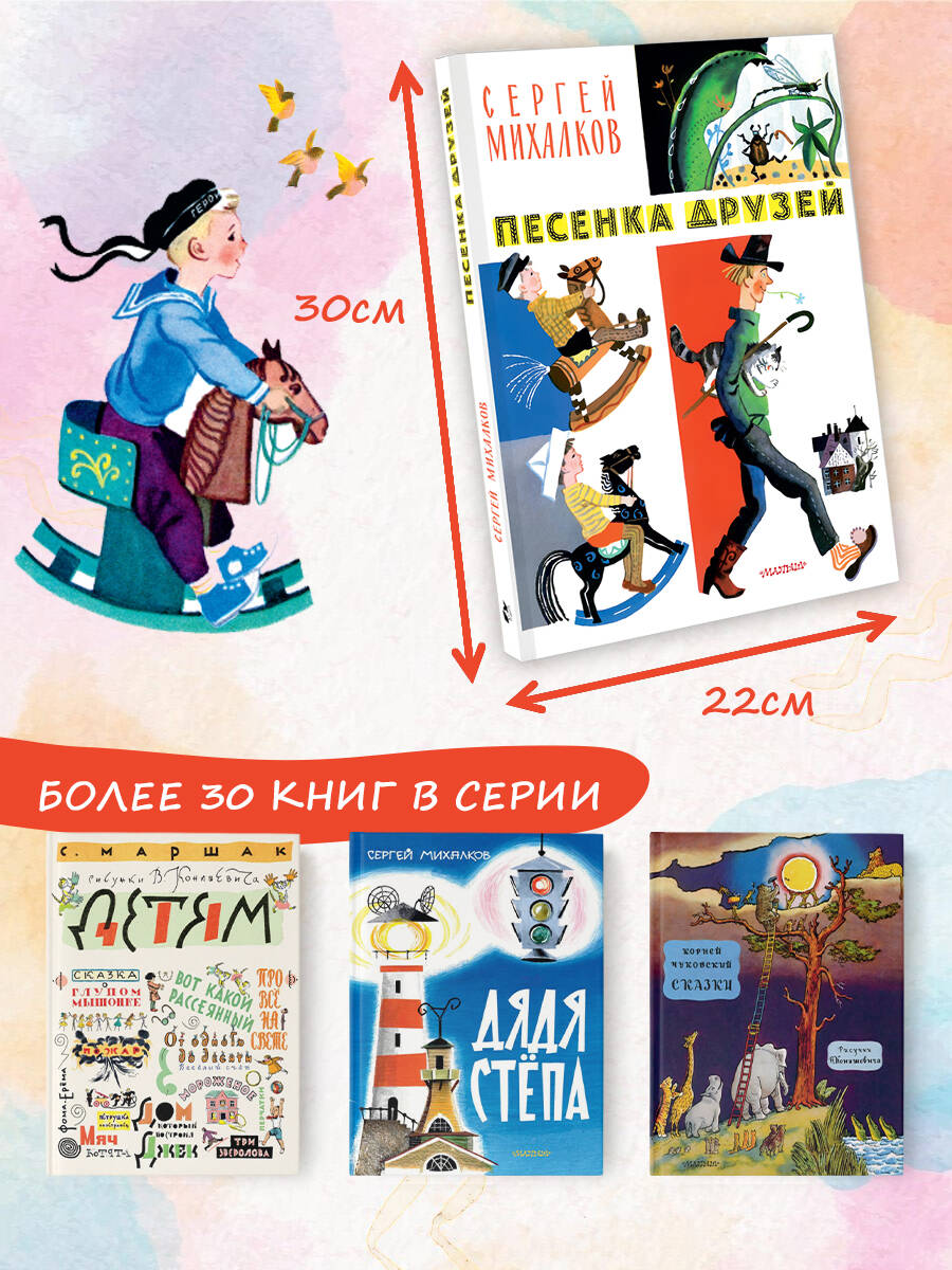 "Песенка друзей" - это сборник самых знаменитых стихотворений Сергея Михалкова с иллюстрациями Юрия Молоканова. Сергей Михалков - один из самых читаемых детских писателей, автор Гимна нашей страны, поэт, сценарист и общественный деятель. Юрий Молоканов - яркий, самобытный художник, стиль которого легко узнаваем и неподражаем. Он работал в самом популярном детском журнале "Мурзилка", проиллюстрировал знаковые книги для детской литературы - книги М. Горького, А. Барто, Ю. Коваля, С. Прокофьевой, В. Гауфа. И книгу Сергея Михалкова "Песенка друзей". Окунитесь в мир двух классиков, которые очень тонко чувствовали детей, детские мечты, фантазии и грёзы.| Издательство | Издательство "АСТ" |
