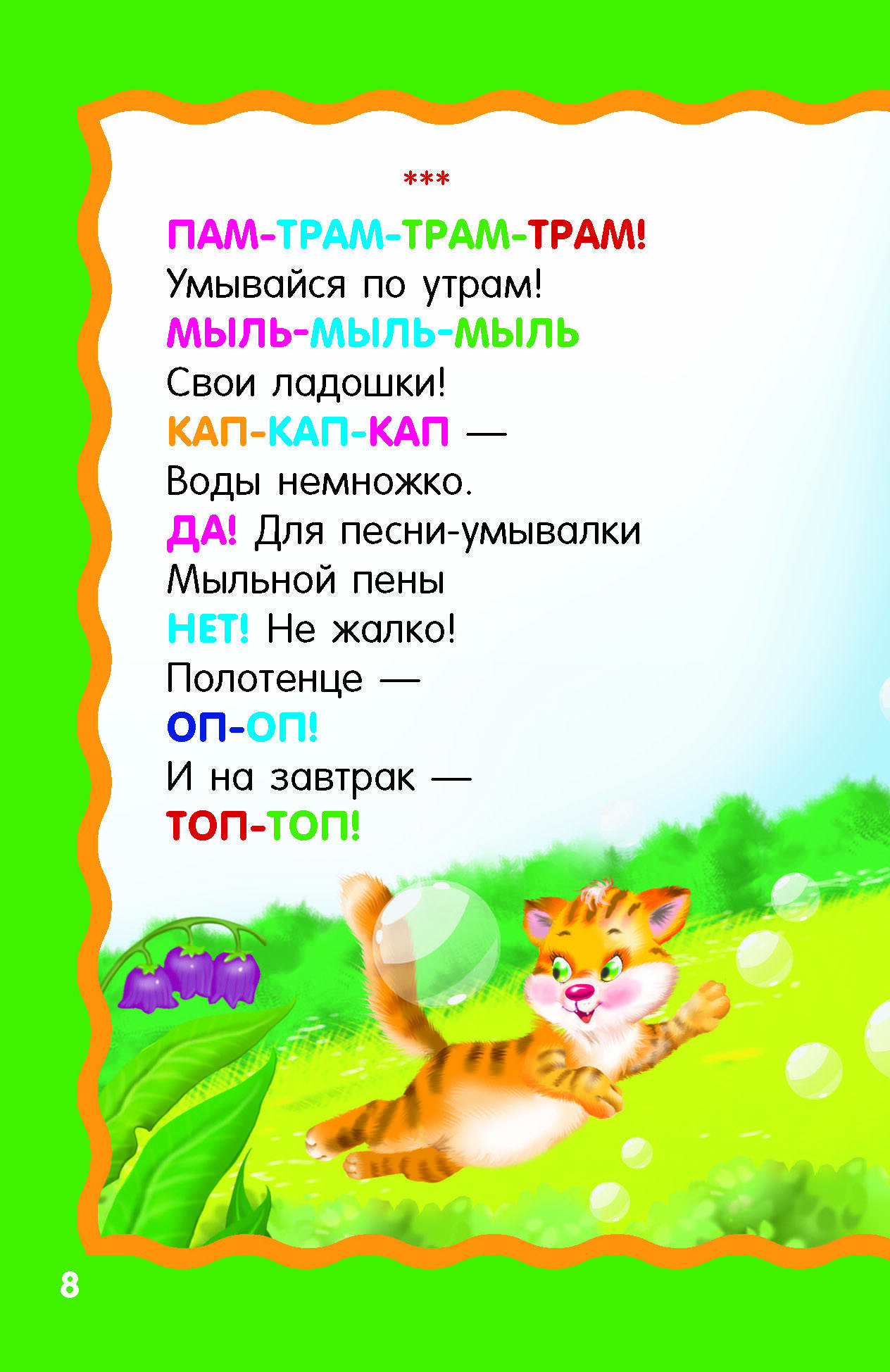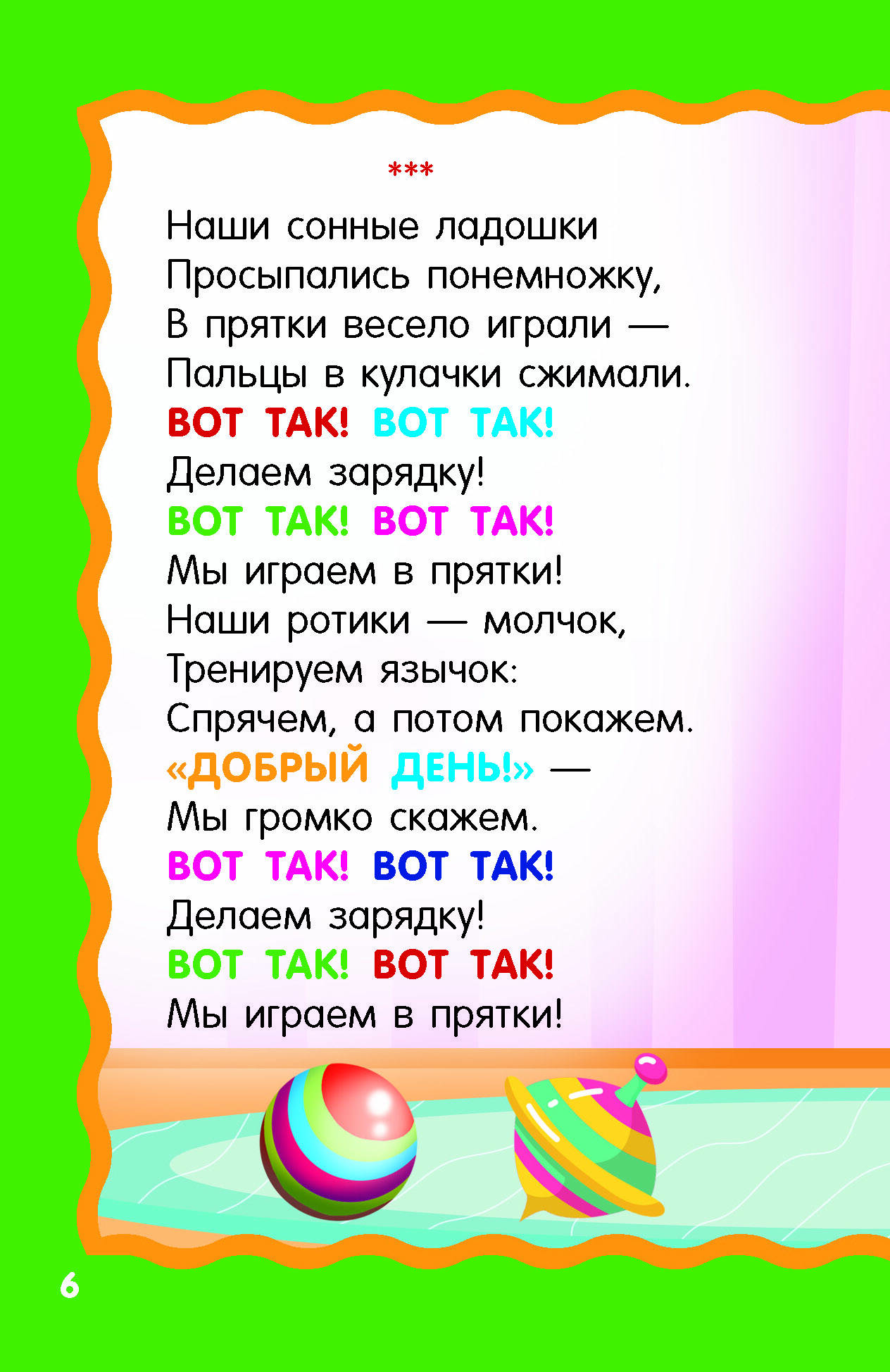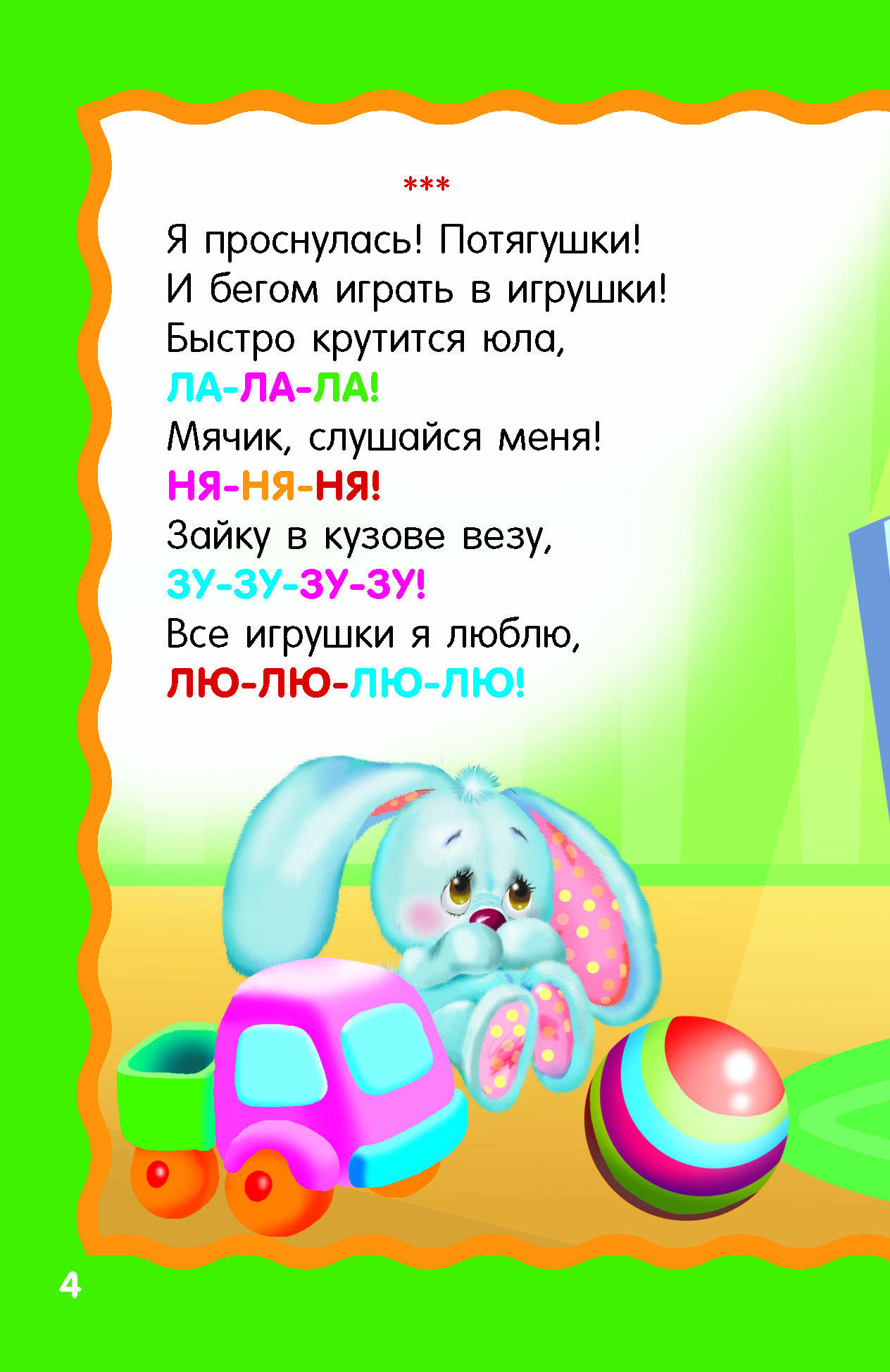 Каждая книжка этой серии - занимательная, полезная, красочная. Как без капризов собрать малыша на прогулку или уложить спать? На помощь заботливой маме придут песенки-болтушки - добрые и мелодичные, которые деткам обязательно понравится подпевать, хлопать в ладошки, топать, прыгать, танцевать, убаюкивать куклу. Ласковый мамин голос и весёлая песенка-игралочка развеселят малыша и подарят хорошее настроение. Пусть карапуз открывает замечательную книжку - и встречает новый день с улыбкой. Песенки-болтушки - добрые и весёлые, небольшие по объёму, чёткие по ритму, образные и легко запоминающиеся. Чем наполнены первые песенки для малыша? Конечно, маленькими сюжетами, знакомыми звукоподражаниями и короткими словами, которые малыш с удовольствием подпоёт маме. Рифмованные диалоги построены так, что взрослый обращается к ребёнку, предлагая ему спеть одно словечко или простую фразу. Иногда строчки песенки сопровождаются жестами или движениями - получается сценка или мини-зарядка. Повторять вслед за мамой слова песенки так здорово - это доставляет малышам радость и приносит огромную пользу. Ребёнок чисто выговаривает звуки, чётко и с выражением произносит каждое слово. Петь и танцевать обязательно понравится малышам, подвижные речевые игры помогут им вырасти добрыми и любознательными. Напевать малышу ритмичные и мелодичные песенки - известная методика раннего развития: • развиваем речь, мелкую моторику и координацию движений; • знакомим с окружающим миром, формируем познавательный интерес; • стимулируем логическое и образное мышление; • тренируем память, концентрацию внимания; • развиваем слуховое восприятие; • улучшаем эмоциональное состояние малыша.| Издательство | Издательство "АСТ" |