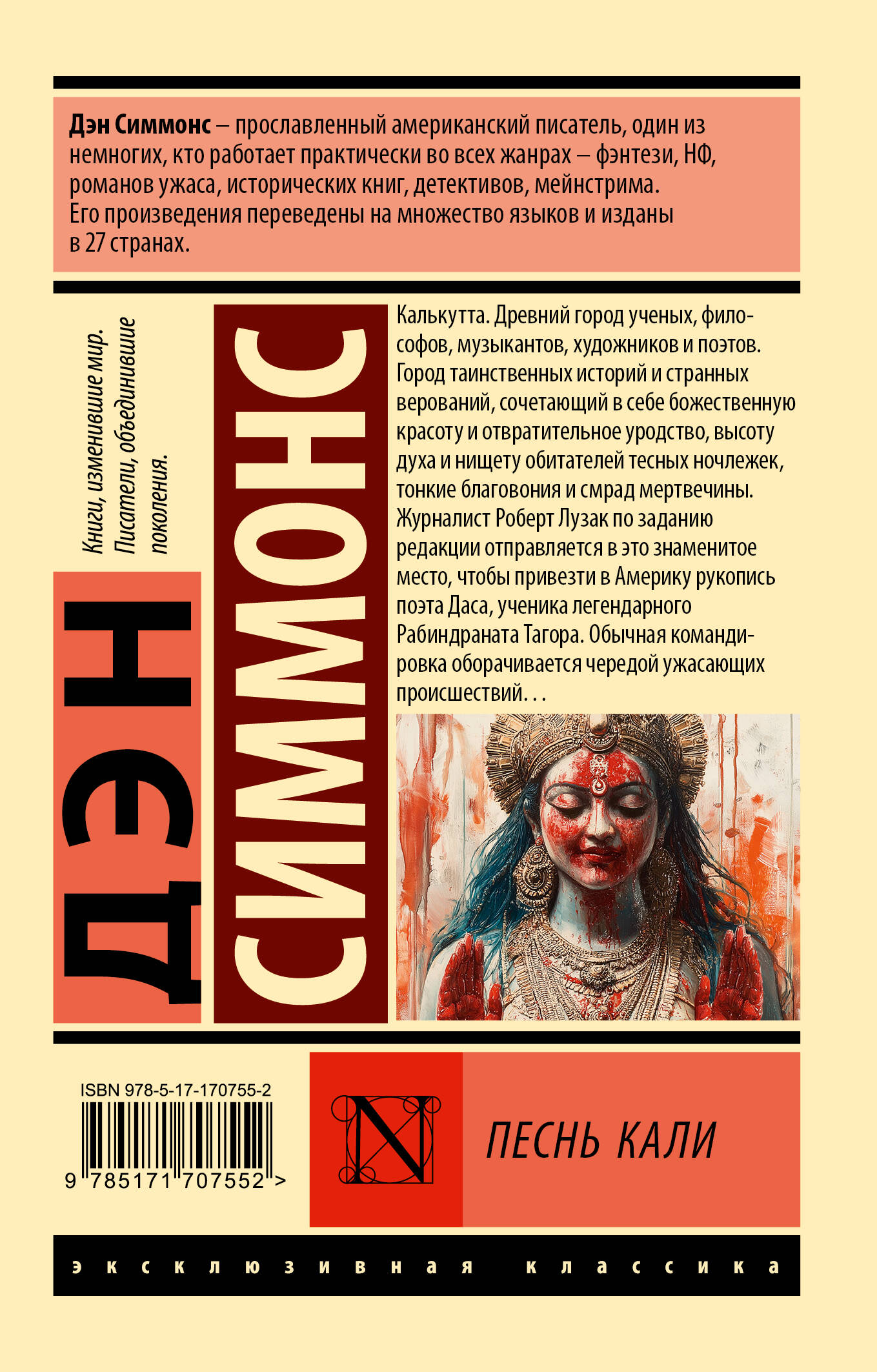«Песнь Кали» - роман, который и принес известность Дэну Симмонсу. Дэн Симмонс - автор знаменитого цикла «Песни Гипериона» и романа «Террор», который лег в основу одноименного телесериала. - Лауреат Всемирной премии фэнтези. - Мрачный и увлекательный хоррор с индийским колоритом. - Издание в серии «Эксклюзивная классика» - в удобном формате и узнаваемом оформлении.