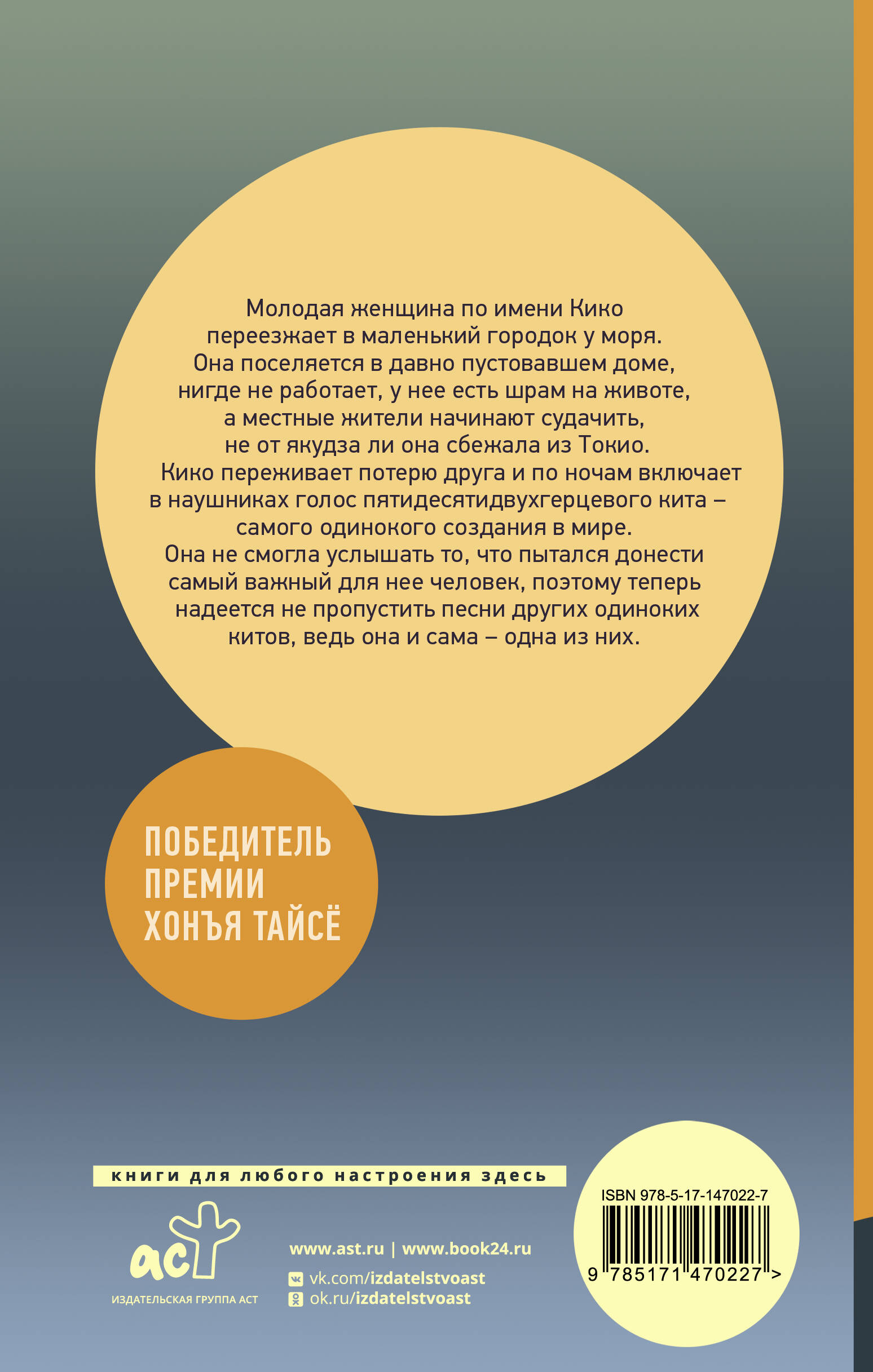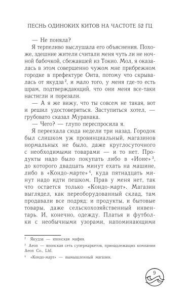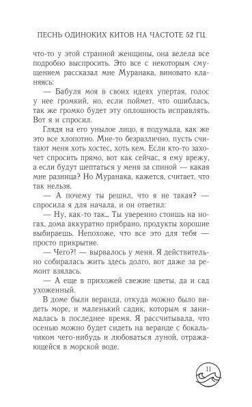- Бестселлер Японии! - Новая книга в серии «Хиты Японии», в которой ранее вышел роман «Моего айдола осуждают»! - Лауреат премии Хонъя Тайсё! Кико сбежала из Токио в маленький городок у моря. Местные жители поговаривают, что девушка прячется здесь от Якудзы. По вечерам Кико сидит в одиночестве и слушает песню кита, который грустно поёт на частоте 52 Гц. Этот кит - последний в своём виде, и никто из других китов в океане не может понять его песни. Кико осталась одна. Она не сумела вовремя услышать послание друга. И теперь Кико пытается не пропустить песни других одиноких китов, ведь девушка сама - одна из них.| Издательство | АСТ |