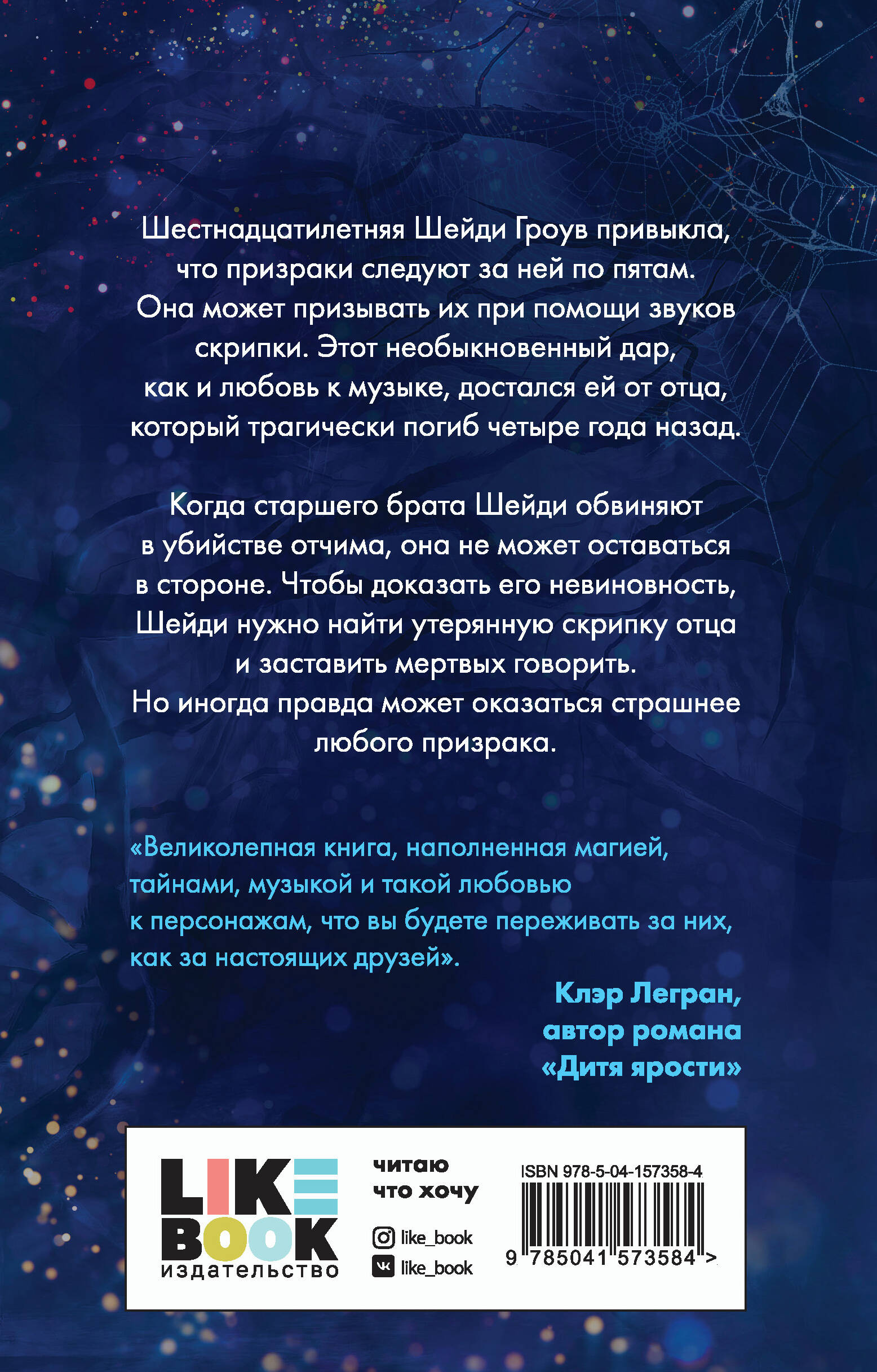 «Песнь призрачного леса» - восхитительный мистический роман, в котором граница между реальностью и кошмарами размыта. Шестнадцатилетняя Шейди Гроув привыкла, что призраки следуют за ней по пятам. Девушка может призывать их при помощи звуков скрипки. Этот необыкновенный дар, как и любовь к музыке, достался ей от отца, который трагически погиб четыре года назад. Когда старшего брата Шейди обвиняют в убийстве отчима, она не может оставаться в стороне. Чтобы доказать его невиновность, Шейди нужно найти утерянную скрипку отца и заставить мертвых говорить. Но иногда правда может оказаться страшнее любого призрака. «Великолепная книга, наполненная магией, тайнами, музыкой и такой любовью к персонажам, что вы будете переживать за них, как за настоящих друзей». - Клэр Легран, автор романа «Дитя ярости» Для фанатов «Прекрасных созданий», «Говорящей с призраками» и «Очень странных дел».| Издательство | ООО "Издательство "Эксмо" |