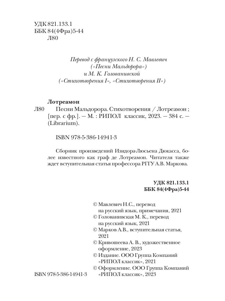 | Автор/составитель | Дюкасс Изидор-Люсьен (Лотреамон) |
