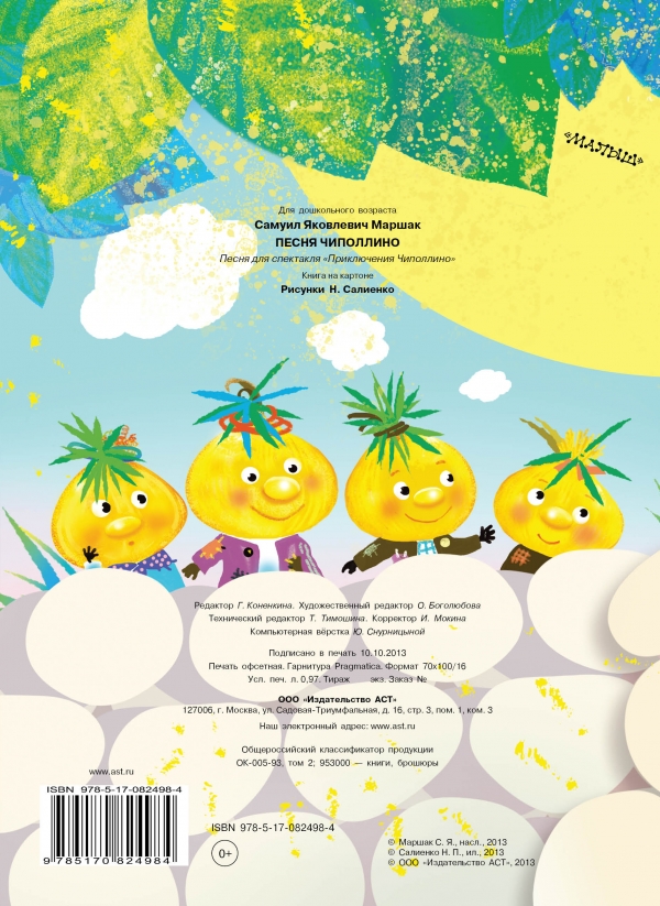 Песня Чиполлино, которую С. Маршак написал для детского спектакля "Приключения Чиполлино", сразу же полюбилась малышам и стала популярной. Малыши с удовольствием распевают её до сих пор.