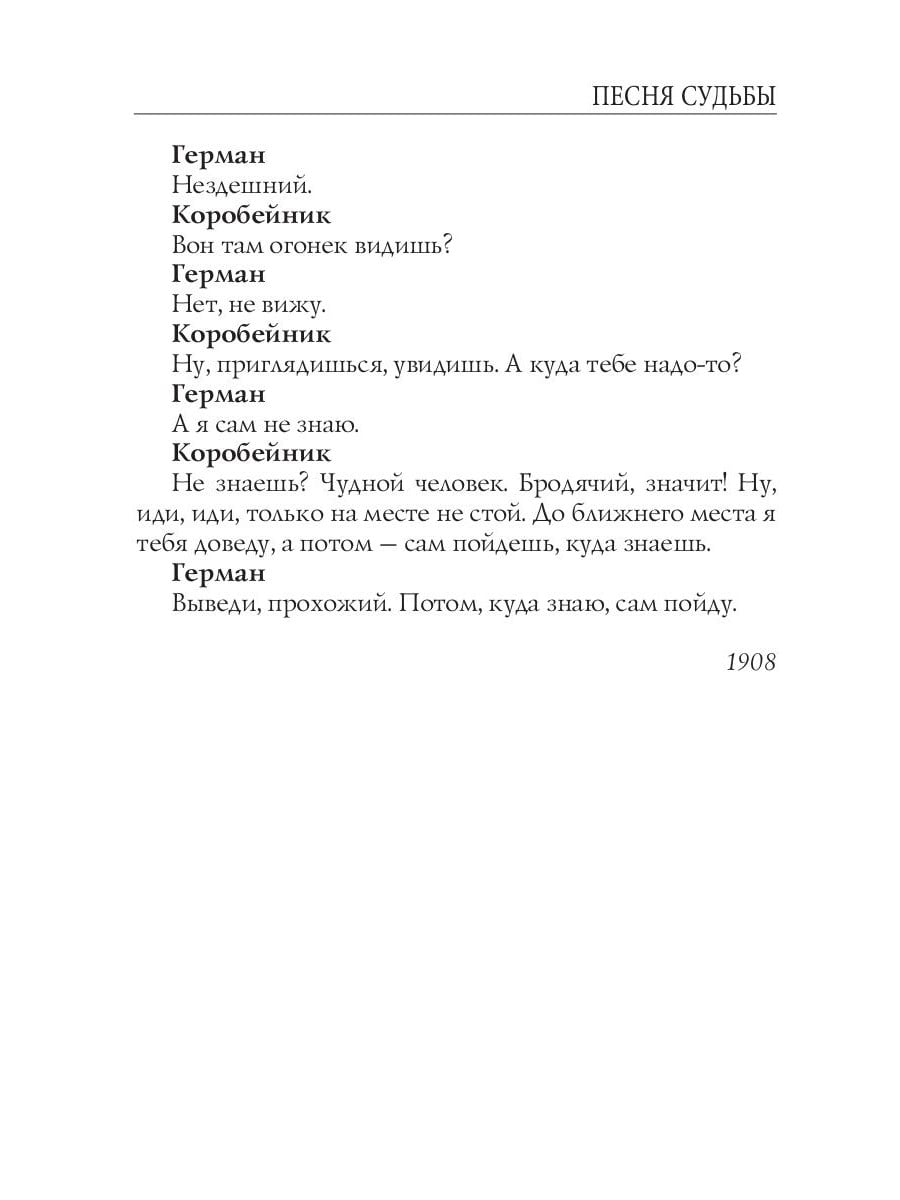 Александр Александрович Блок (1880-1921) - великий русский поэт Серебряного века, перу которого принадлежат произведения, которые стали не только символом своей эпохи, но и связующим звеном между классической литературой и модернизмом. «Песня судьбы» - одно из самых известных драматических произведений А. Блока Главный герой, поэт Герман, уходит из «тихого дома», полного «безысходного счастья», от жены и матери ради прекрасной Фаины. Однако молодому человеку открывается мир России начала XX века, полный пошлости, продажности, лжи и насилия... Но удастся ли главному герою вернуться домой?| Издательство | Т8 RUGRAM |