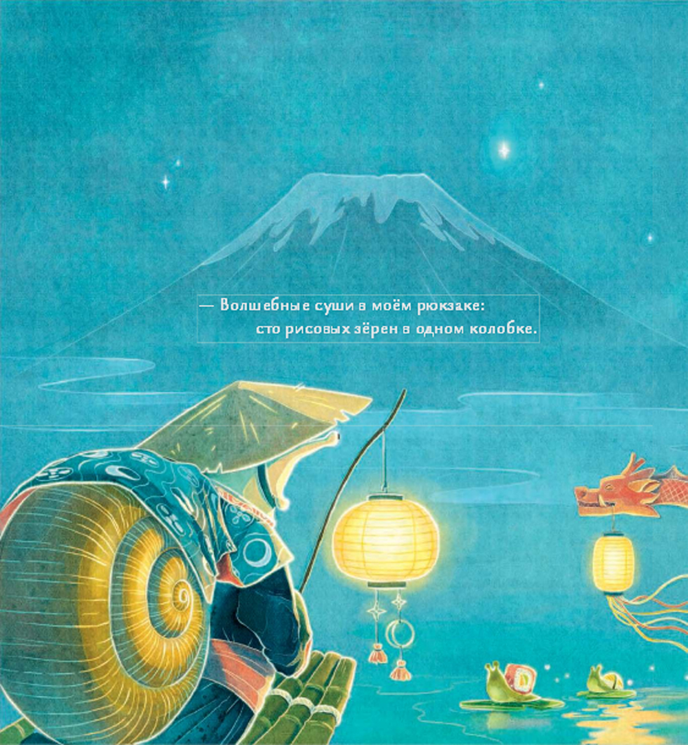 Храбрая улитка ползёт по склону Фудзи не просто так. Дорога длинна и трудна, в ночной темноте притаились недобрые духи, но путешественницу это не остановит. Ведь этой ночью, в праздник Танабата, на самой вершине горы встречаются звёзды Пастух и Ткачиха, а потом Млечный Путь снова разлучит их на целый год… Кто позаботится о влюблённых, если не маленькая улитка?