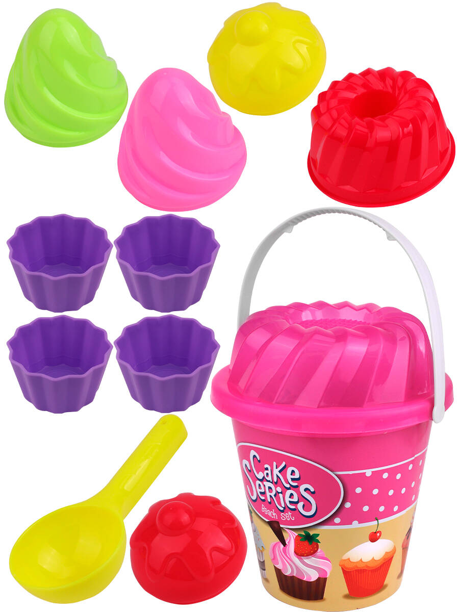 Песочный набор "Вкусняшка" (ведерко, сито, лопатка,10 форм, в сетке) цвет микс (Арт. ИК-2321)