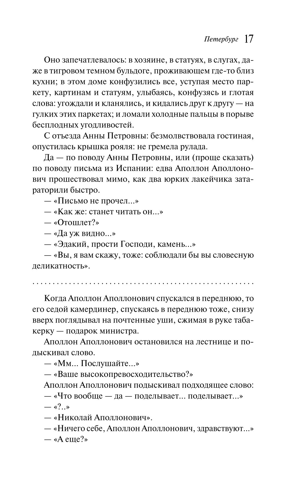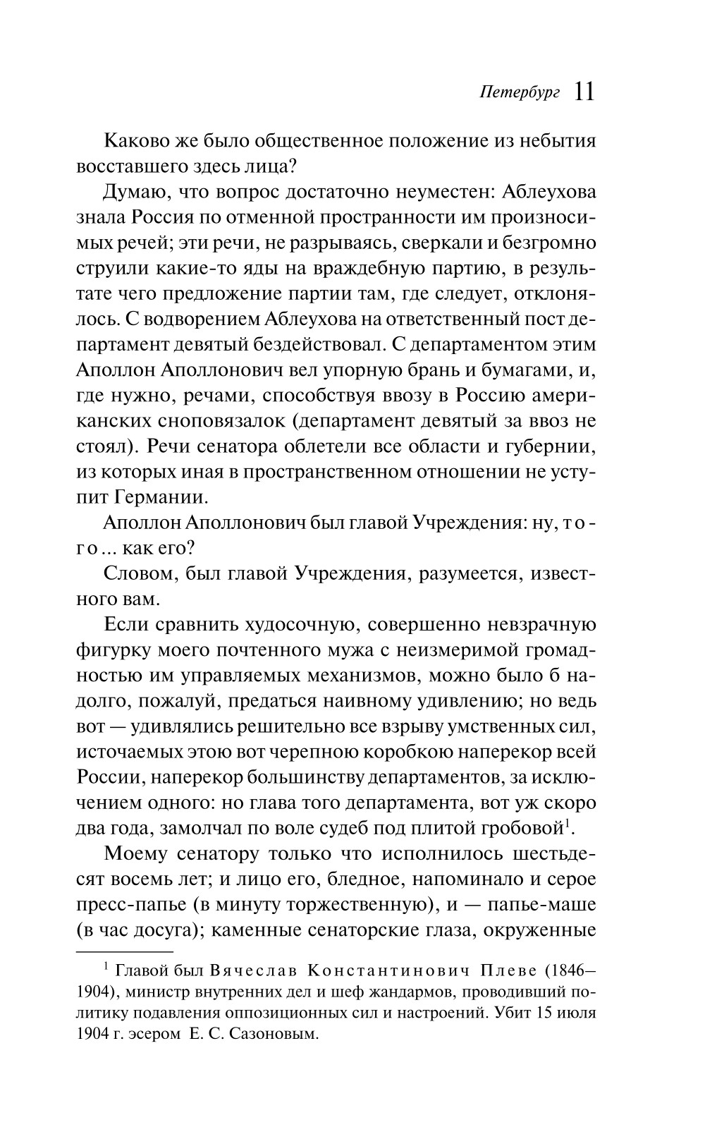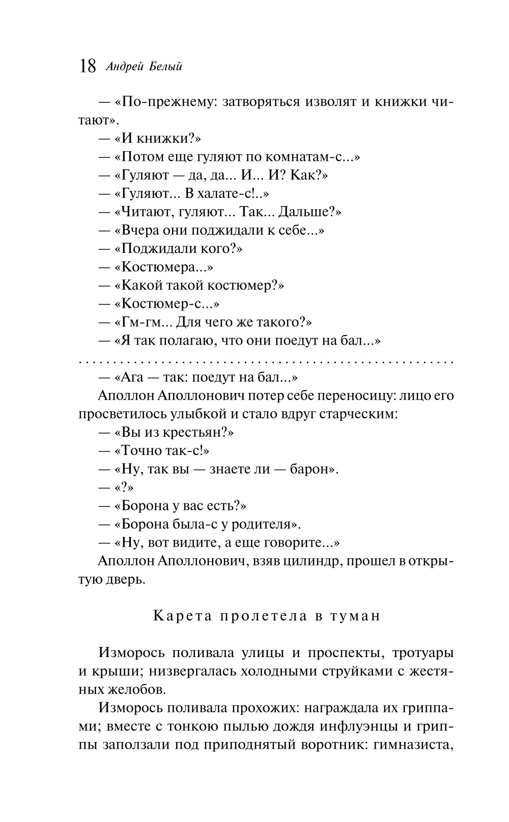 Андрей Белый (Борис Николаевич Бугаев) (1880-1934) - одна из ключевых фигур Серебряного века, писатель-символист, мистик и экспериментатор. Петербург в одноименном романе - мучительный и завораживающий, город-сон, город-галлюцинация, он же является и главным героем произведения. На фоне величественной архитектуры сталкиваются людские судьбы. Революционеру Николаю Аполлоновичу Аблеухову поручено страшное дело - убить своего отца-сенатора. По замыслу автора - это заключительный аккорд мифа о Петербурге, творимого на протяжении целого столетия гениями русской культуры: Пушкиным, Гоголем, Достоевским, Мережковским. Город на Неве описан Белым как символ того шаткого состояния, в каком оказалась Россия в начале XX столетия. Изначально роман назывался «Лакированная карета», название «Петербург» автору подсказал Вячеслав Иванов. Текст написан ритмической прозой, в которой угадываются поэтические тропы. Набоков называл роман третьим шедевром мировой литературы XX века - после «Улисса» Джойса и «Превращения» Кафки. В данном издании публикуется полная неотредактированная версия романа.| Издательство | Эксмо |