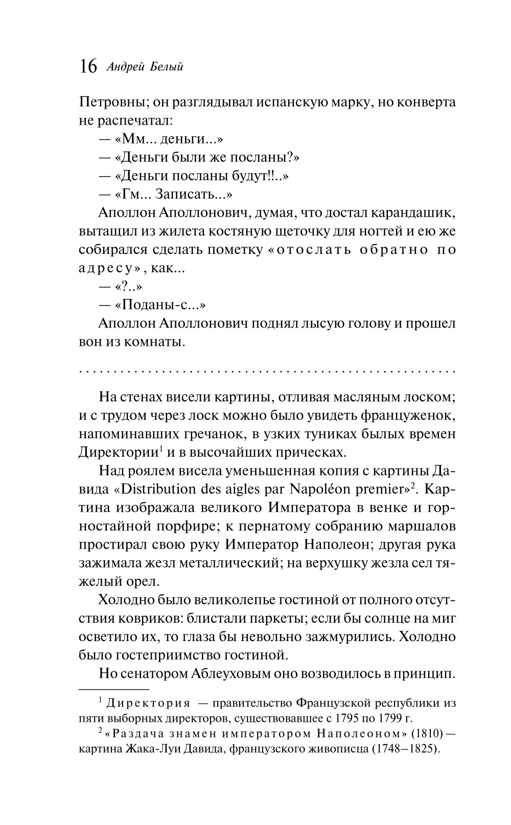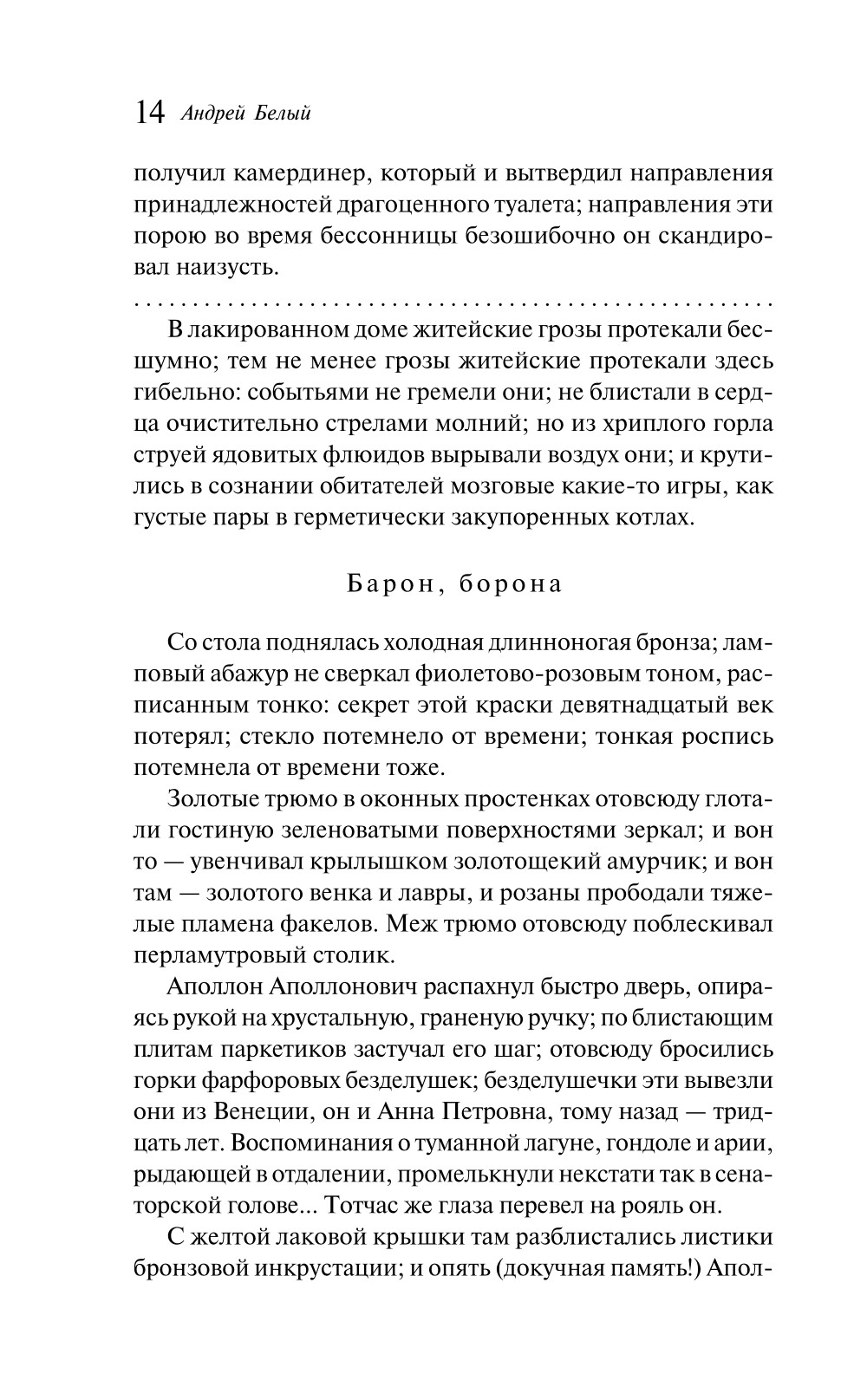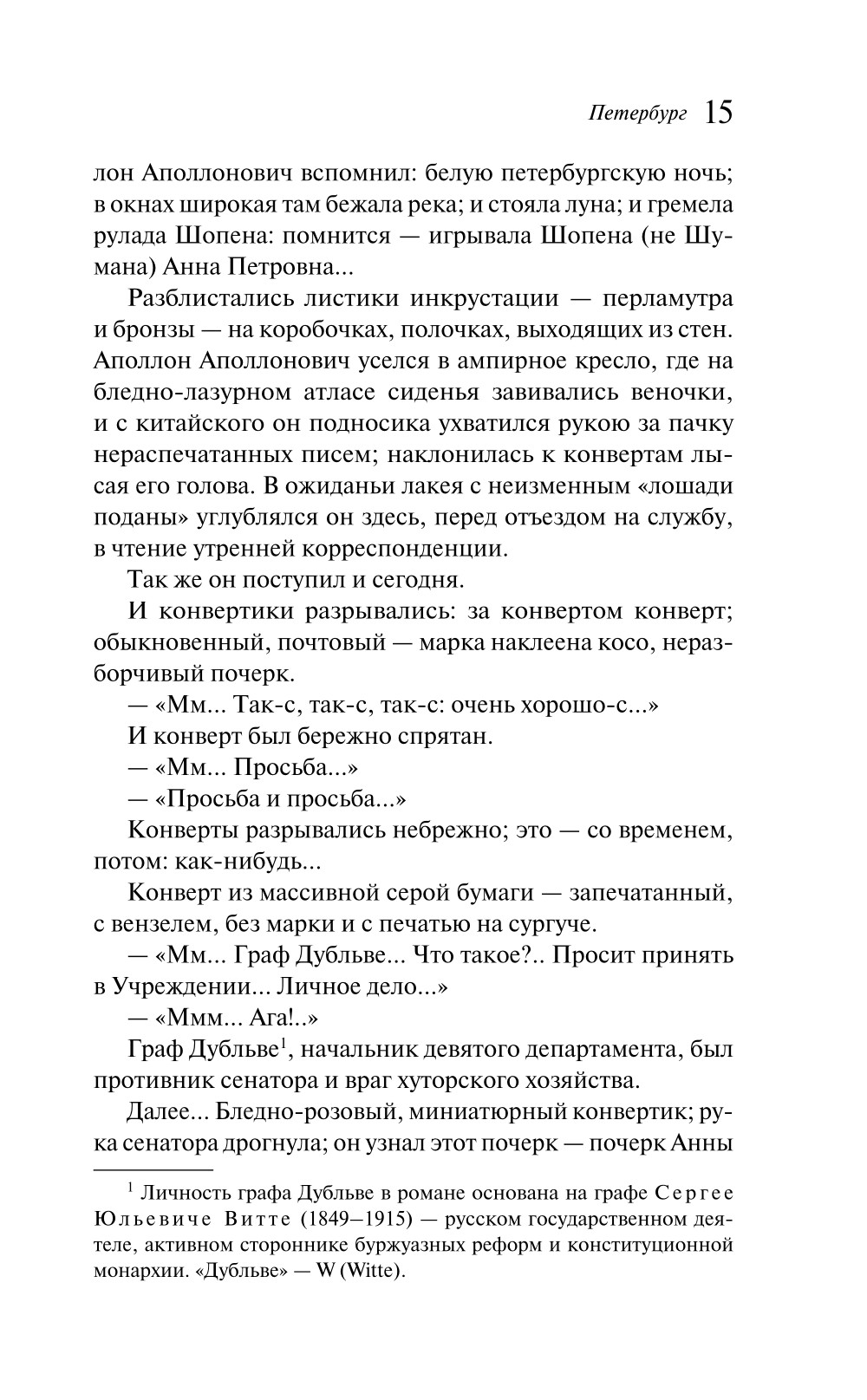Андрей Белый (Борис Николаевич Бугаев) (1880-1934) - одна из ключевых фигур Серебряного века, писатель-символист, мистик и экспериментатор. Петербург в одноименном романе - мучительный и завораживающий, город-сон, город-галлюцинация, он же является и главным героем произведения. На фоне величественной архитектуры сталкиваются людские судьбы. Революционеру Николаю Аполлоновичу Аблеухову поручено страшное дело - убить своего отца-сенатора. По замыслу автора - это заключительный аккорд мифа о Петербурге, творимого на протяжении целого столетия гениями русской культуры: Пушкиным, Гоголем, Достоевским, Мережковским. Город на Неве описан Белым как символ того шаткого состояния, в каком оказалась Россия в начале XX столетия. Изначально роман назывался «Лакированная карета», название «Петербург» автору подсказал Вячеслав Иванов. Текст написан ритмической прозой, в которой угадываются поэтические тропы. Набоков называл роман третьим шедевром мировой литературы XX века - после «Улисса» Джойса и «Превращения» Кафки. В данном издании публикуется полная неотредактированная версия романа.| Издательство | Эксмо |