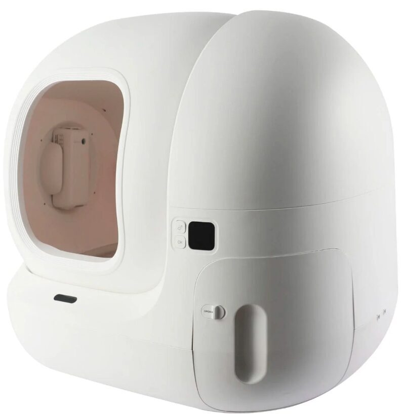 Оснащён датчиками безопасности, которые предотвращают его работу, если кошка находится внутри, или если она застревает, гарантируя безопасность питомца.