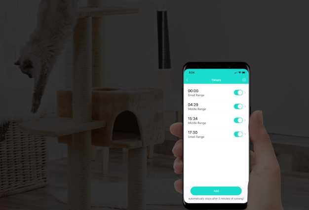 Соедините Smart Dot с приложением, чтобы получить еще больше возможностей. Это позволяет вам, например, устанавливать индивидуальное расписание игр для ваших кошек. Установите часы, в течение которых вы хотите, чтобы устройство работало, а также конкретные режимы работы. Удивите своих питомцев и позвольте им насладиться отличным развлечением, даже когда вы находитесь вдали от дома.
