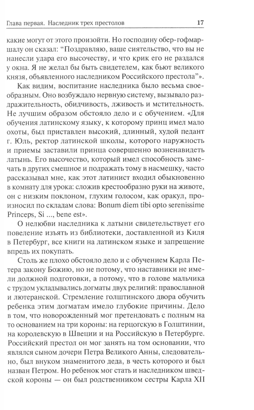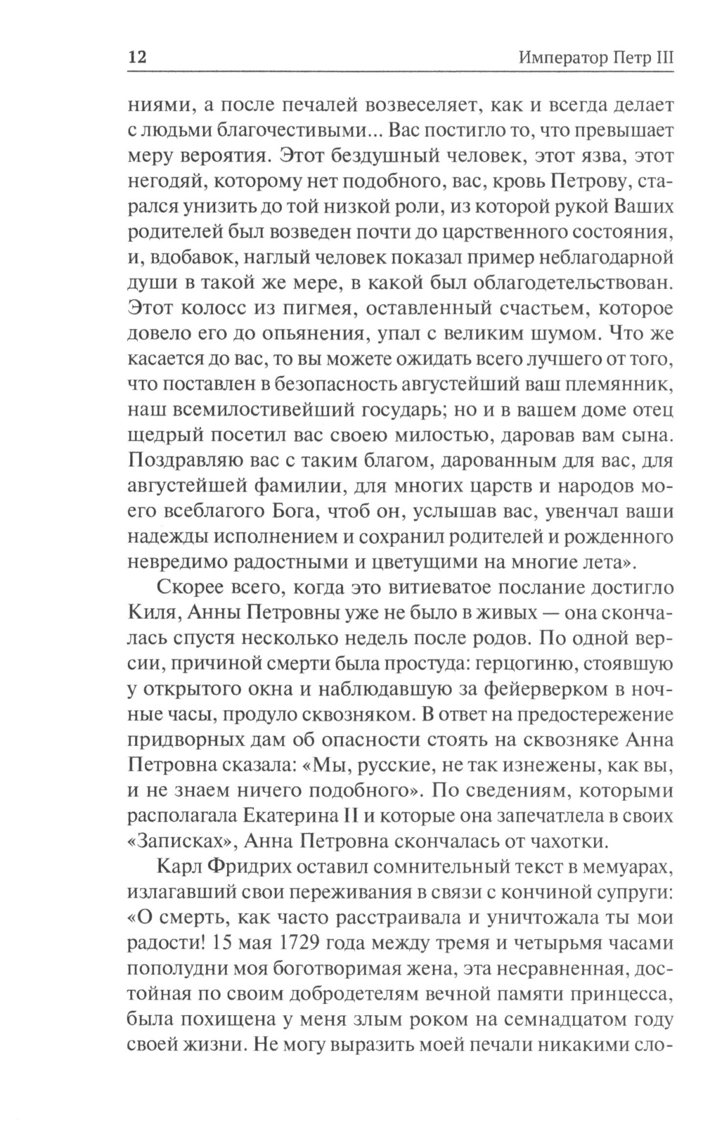 Книга доктора исторических наук, члена Союза писателей Н. И. Павленко не только воссоздает объективный образ занимавшего русский трон 186 дней императора Петра III, но и является откликом на попытки некоторых современных исследователей бездоказательно опровергнуть в погоне за оригинальностью те оценки личности «русского принца», которые сформировались многими поколениями авторитетных историков. Книга представляет собой всестороннее исследование жизни и правления одного из самых неоднозначных императоров России. Автор подробно анализирует его происхождение, детство и юность, сложные отношения с семьей и династическими обязанностями. В книге освещаются брачные отношения Петра III с Екатериной Алексеевной, будущей Екатериной II, и их непростая совместная жизнь. Жизнь великокняжеской четы до восшествия на престол раскрывается через призму личных и политических взаимодействий. Павленко уделяет особое внимание влиянию прусского короля Фридриха II на мировоззрение и политику Петра третьего, а также его дипломатическим и военным шагам на международной арене. В книге анализируются попытки Петра III провести внутренние реформы и его стремление выделиться среди предшественников. Автор детально описывает события, приведшие к свержению Петра III и восшествию на престол Екатерины II, ставшей одной из величайших правительниц России. «Петр III» Н.И. Павленко является важным вкладом в историческую литературу и исследование российской империи. Книга подробно раскрывает политическую обстановку 18 века, предлагая глубокое понимание ключевых событий и личностей. Это издание будет интересно всем, кто увлекается историей России, политикой и судьбами выдающихся исторических деятелей.| Издательство | РГ-Пресс |