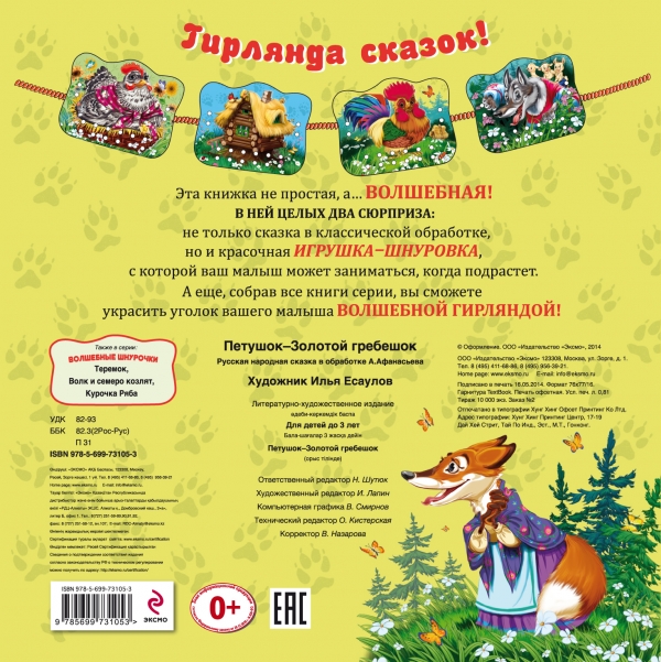Гирлянда сказок!<br /> Эта книжка не простая, а… волшебная! В ней целых два сюрприза: не только сказка в классической обработке, но и красочная игрушка-шнуровка, с которой ваш малыш может заниматься, когда подрастет.<br /> А еще, собрав все книги серии, вы сможете украсить уголок вашего малыша волшебной гирляндой!