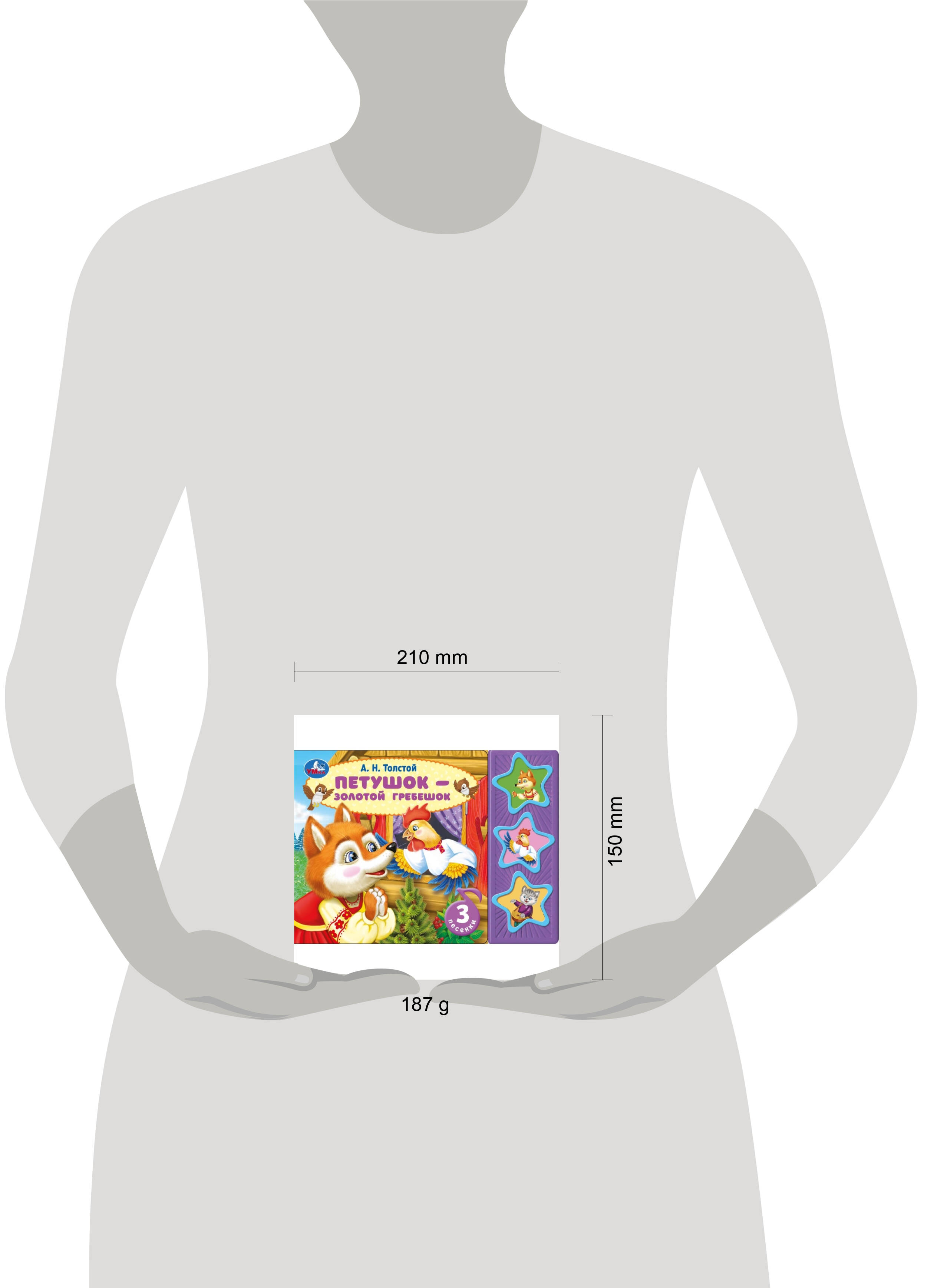 Музыкальная книга "А. Н. Толстой. Петушок - золотой гребешок" ТМ "УМка" станет прекрасным подарком для малыша: - 3 звуковые кнопки в виде звёздочек - 3 песни по мотивам сказки - красочные иллюстрации - любимая сказка - кнопка Вкл./Выкл. на обороте Ребёнок с удовольствием будет листать плотные страницы, рассматривать яркие картинки и, конечно, нажимать на кнопки и слушать мелодичные песенки по мотивам известной русской народной сказки. Малыш легко освоит включение звука: по нажатию на кнопку песенка включится, при втором нажатии выключится. Благодаря компактному размеру книгу удобно взять с собой в дорогу. Музыкальная книга ТМ "УМка" развивает: - слуховое восприятие - навык чтения - фантазию - образное мышление - память Объём: 6 стр. Формат: 206 х 150 мм. Материал: пластмасса + картон. Работает от 3-х батареек типа LR44 (в комплекте). Рекомендовано детям младшего дошкольного возраста.| Издательство | С-Маркет ООО |
