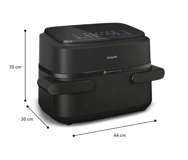 Устройство подходит для жарки, запекания, разогрева и приготовления различных блюд для всей семьи. Чёрный корпус придаёт аэрогрилю современный и универсальный внешний вид, который гармонично вписывается в интерьер кухни.