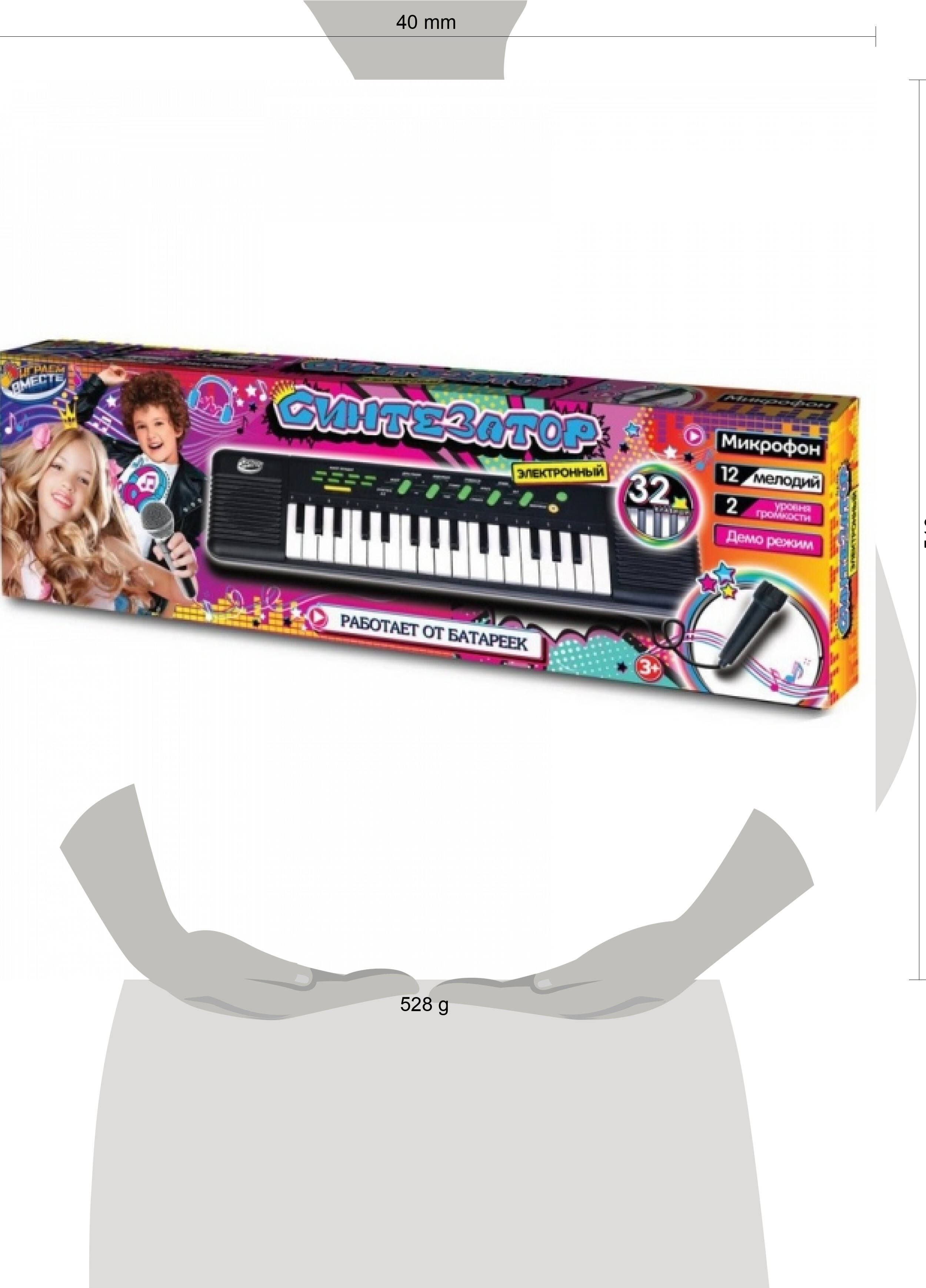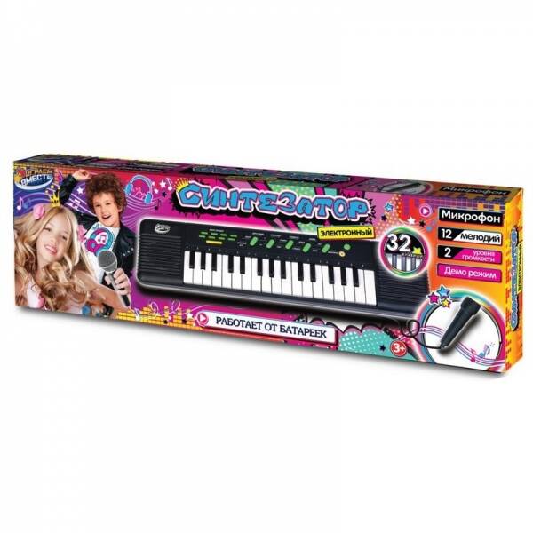 Аннотация: Пианино "электронный синтезатор" 32 клав., микрофон, кор.47,5*14,4*5,6см ИГРАЕМ ВМЕСТЕ в кор.2*36шт