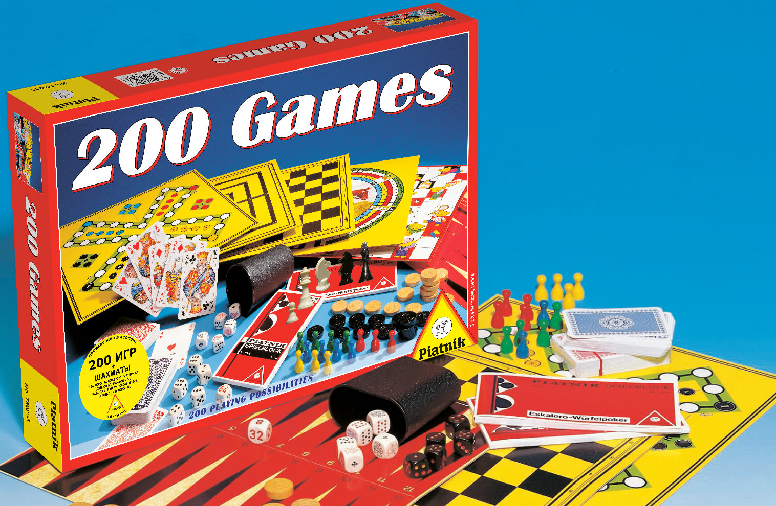 200 игр LV+RUS: Набор настольных игр 200 в 1 от Piatnik - это полный комплекс развлечений, среди которых каждый сможет подобрать что-то интересное. И всё это в одной компактной упаковке, которую можно легко положить в небольшую сумку. Игровые поля, карты, фишки, кубики - всё необходимое внутри, включая правила.