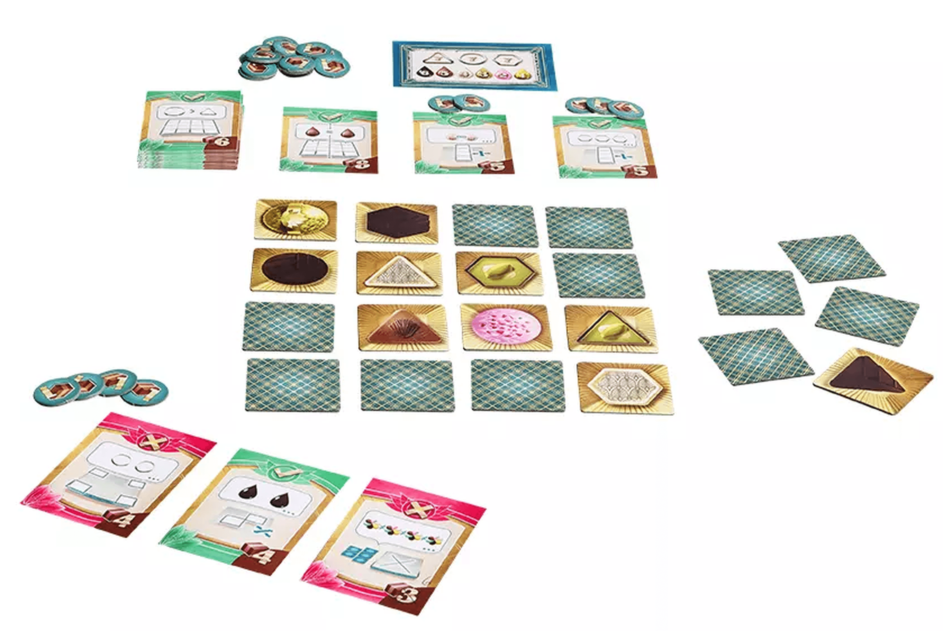 Откройте эту коробку вкусных шоколадных конфет и ход за ходом угадывайте её содержимое. Но вы должны действовать осмотрительно - ваши своевременные действия и вкус к тактике будут иметь решающее значение. Сколько сейчас белых шоколадных конфет в коробке? А сколько вне её? Треугольных конфет больше, чем круглых? Или больше всего чудесных шестиугольных конфет? На эти и многие другие вопросы необходимо ответить как можно точнее, чтобы набрать наибольшее количество очков. Горько-сладкая игра в угадывание начинается! Цель игры - делать правильные предположения, чтобы набрать наибольшее количество очков, аккуратно выбирая карты и наиболее выгодно для себя раскрывая карточки с конфетами.