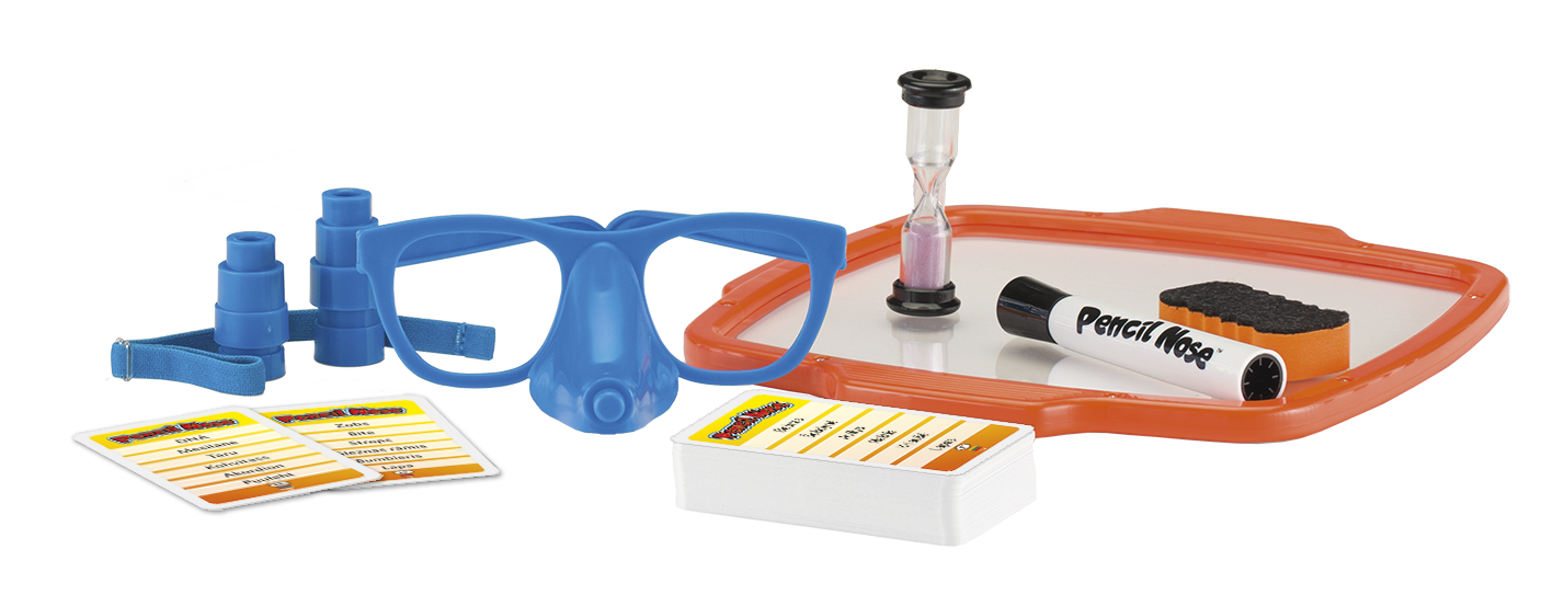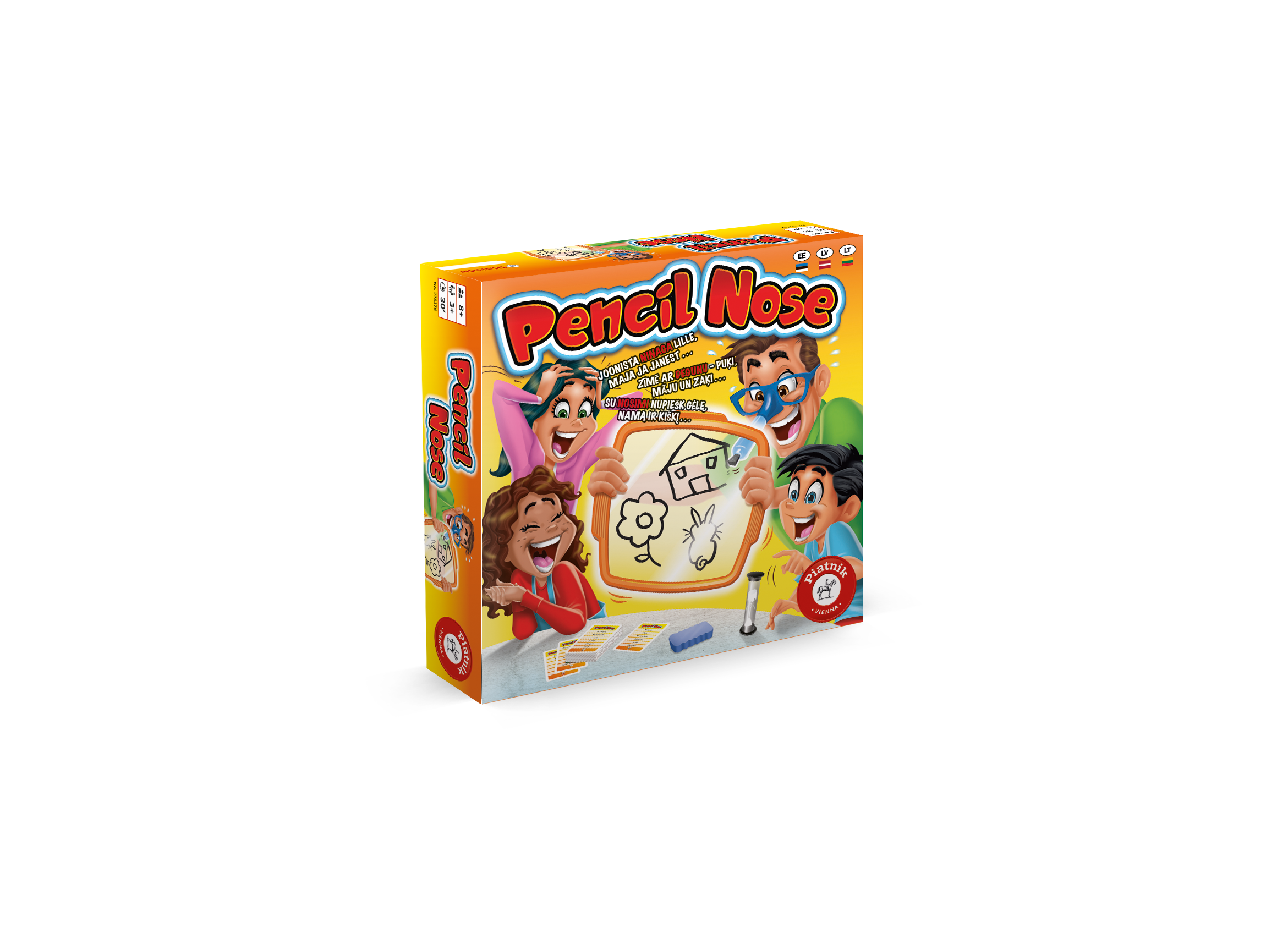 Pencil Nose настольная игра (игра на эстонском, латышском и литовском языках). Надевайте очки и начинаем! Думаешь, у тебя есть нюх на рисование? Посмотрим, умеешь ли ты рисовать носом! При помощи только маркера на носу нужно нарисовать на прозрачном планшете как можно больше загаданных предметов, чтобы их смогли угадать члены вашей команды до того, как истечет отведенное вам время. Просто выберите карту, а затем, используя специальные очки с носом-маркером, попробуйте нарисовать заданный объект на планшете, используя только свой нос! Только угадывая правильно, вы набираете очки и приближаетесь к победе! Быстрая и веселая игра для целых команд или отдельных пар игроков! В комплекте игры: 1 прозрачная доска-планшет, 1 стирающийся маркер, 1 пара очков для рисования, 1 губка для стирания, 55 карточек со словами-заданиями (12 разных слов на карточке), 1 песочные часы-таймер, правила игры. Рекомендуемый возраст игроков: от 8 лет.