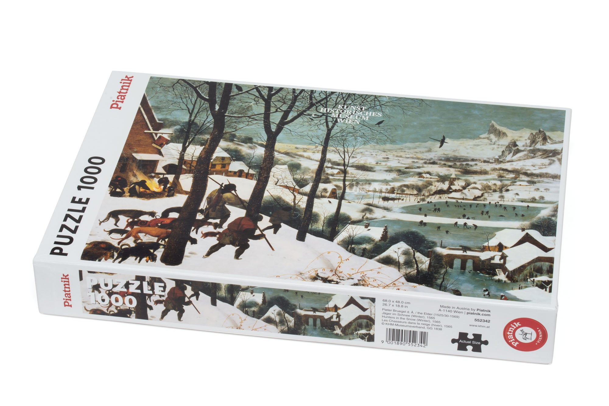 Все любят собирать пазлы - это весело и познавательно. Пазлы идеально подходят для собирания в одиночку или в группе. Пазл 1000 Брейгель Охотники на снегу. Размеры готовой картинки: 68 x 48 см. Соедините все детали вместе, и насладитесь чудесным изображением. Чтобы справиться с задачей вам будет необходимо приложить немалую долю внимания и терпения. Вы сразу поймете, подходят ли детали друг к другу, за счет уникальной резки каждого элемента. А качественный материал не позволит вашей картине потускнеть с течением времени. Собирание пазла поможет развить память, моторику рук, логику и усидчивость.
