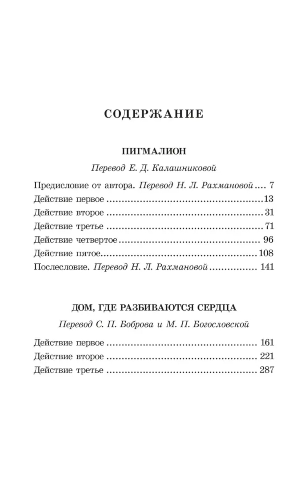 В книгу вошли две культовые пьесы классика британской драматургии Бернарда Шоу. «Пигмалион» (1912) - аллюзия на миф о скульпторе Пигмалионе, который влюбился в собственное творение. Правда, в пьесе Шоу между главной героиней и преобразившим ее профессором не возникает романтической истории. Основная идея пьесы заключается в том, что внешний лоск, хорошие манеры, правильная речь - это все наносное. Под грубой оболочкой дурно воспитанного, неряшливого и неграмотного человека вполне может скрываться тонкая, умная личность, которая сумеет преобразиться под влиянием хорошего образования. «Дом, где разбиваются сердца» (1917) - тонкая остроумная сатира на современное автору английское буржуазное общество: тщеславное, лицемерное, безразличное к чувствам других. Вызывающий наибольшую симпатию персонаж пьесы - это няня Гинесс, пытающаяся в этом безалаберной, абсурдной атмосфере создать хоть какое-то подобие уюта и порядка.| Издательство | Детская литература |