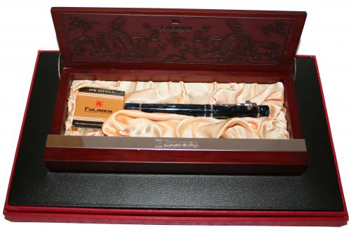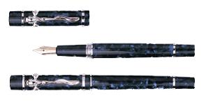 Лак - это вдохновение. Ручка одета в синий целлюлоидный корпус с серебряной крышкой и имеет 14 каратных волос золота. Ручка в комплекте с коробкой.
