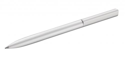 Metāla lodīšu pildspalvai ir bezklipu dizains.