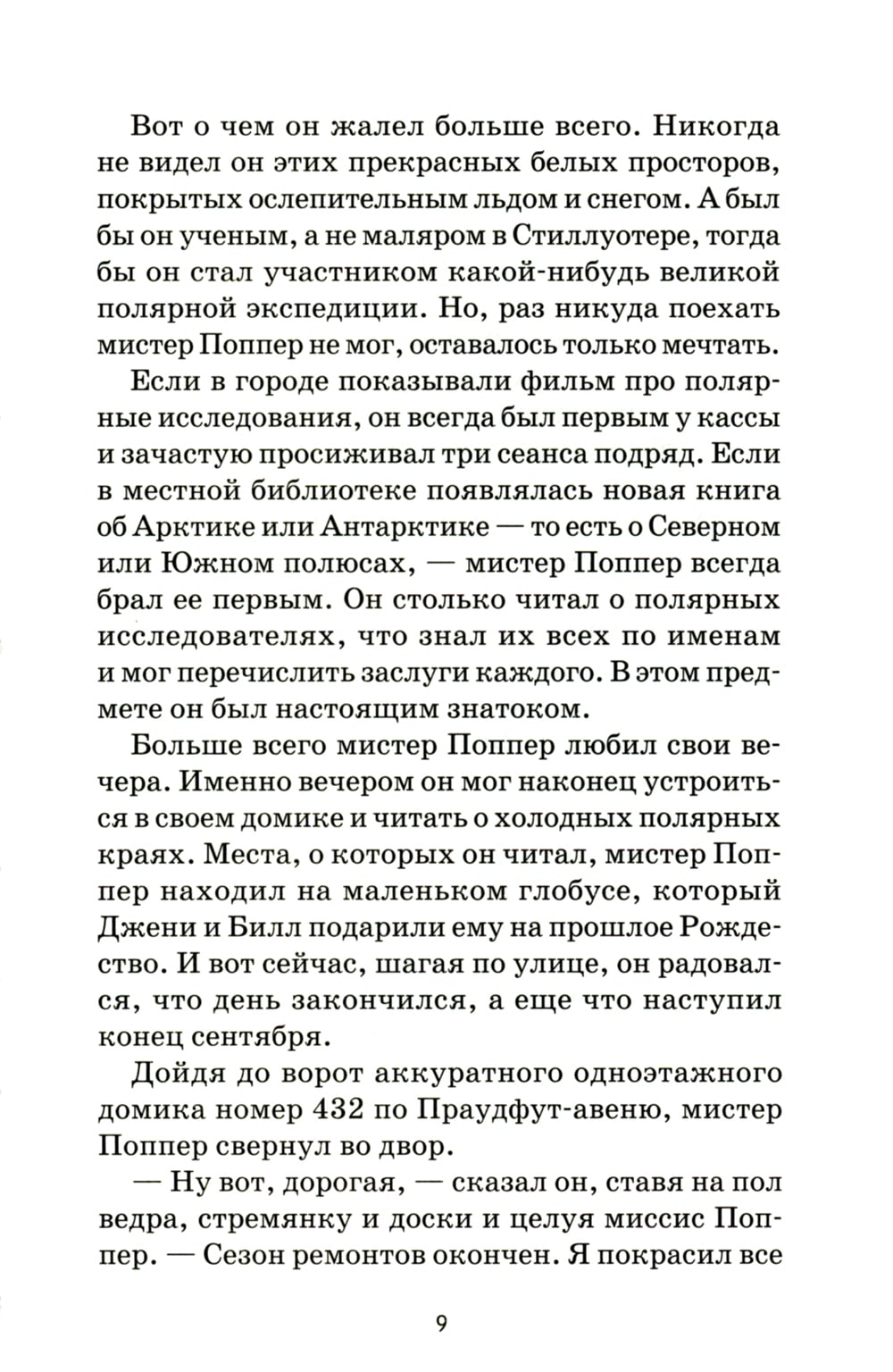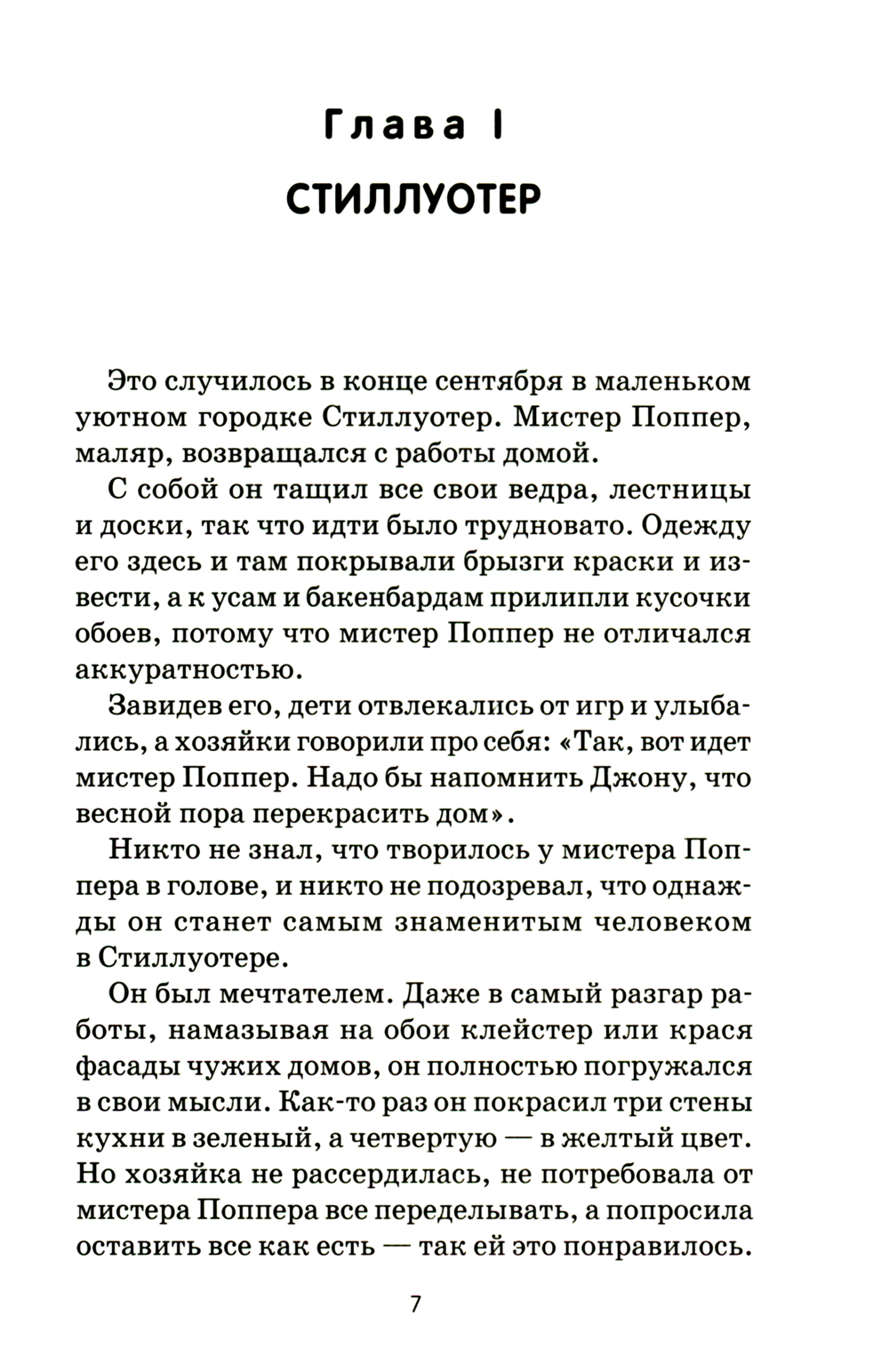Эту невероятную и смешную историю сочинили в конце 1930-х годов Ричард Этуотер, журналист и преподаватель древнегреческого языка из Чикаго, и его жена Флоренс. Книга стала классикой, авторы получили за нее медаль Джона Ньюбери, которая вручается за выдающийся вклад в американскую литературу для детей. По мотивам этой истории снят фильм с Джимом Керри в главной роли.