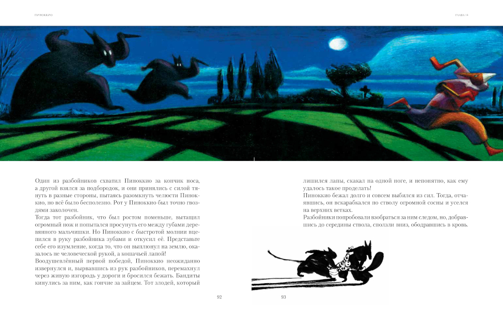 Трогательная и волшебная история про озорного деревянного мальчишку уже более ста лет остается одной из самых любимых сказок во всем мире. Неудивительно, что за иллюстрирование этого шедевра итальянского писателя Карло Коллоди брались самые разные художники, придавая знакомому тексту новые очертания. Известный итальянский художник Лоренцо Маттотти начал работать над «Пиноккио» почти сорок лет назад, и его диалог с этим текстом продолжается до сих пор. Таинственные, фантастические и абсолютно завораживающие - именно так можно охарактеризовать иллюстрации Маттотти, которые подарят вам яркие эмоции и помогут по-новому взглянуть на любимых героев. Издание включает оригинальные и неопубликованные рисунки и этюды, созданные Маттотти для мультфильма Энцо Д'Ало «Пиноккио» (2012).