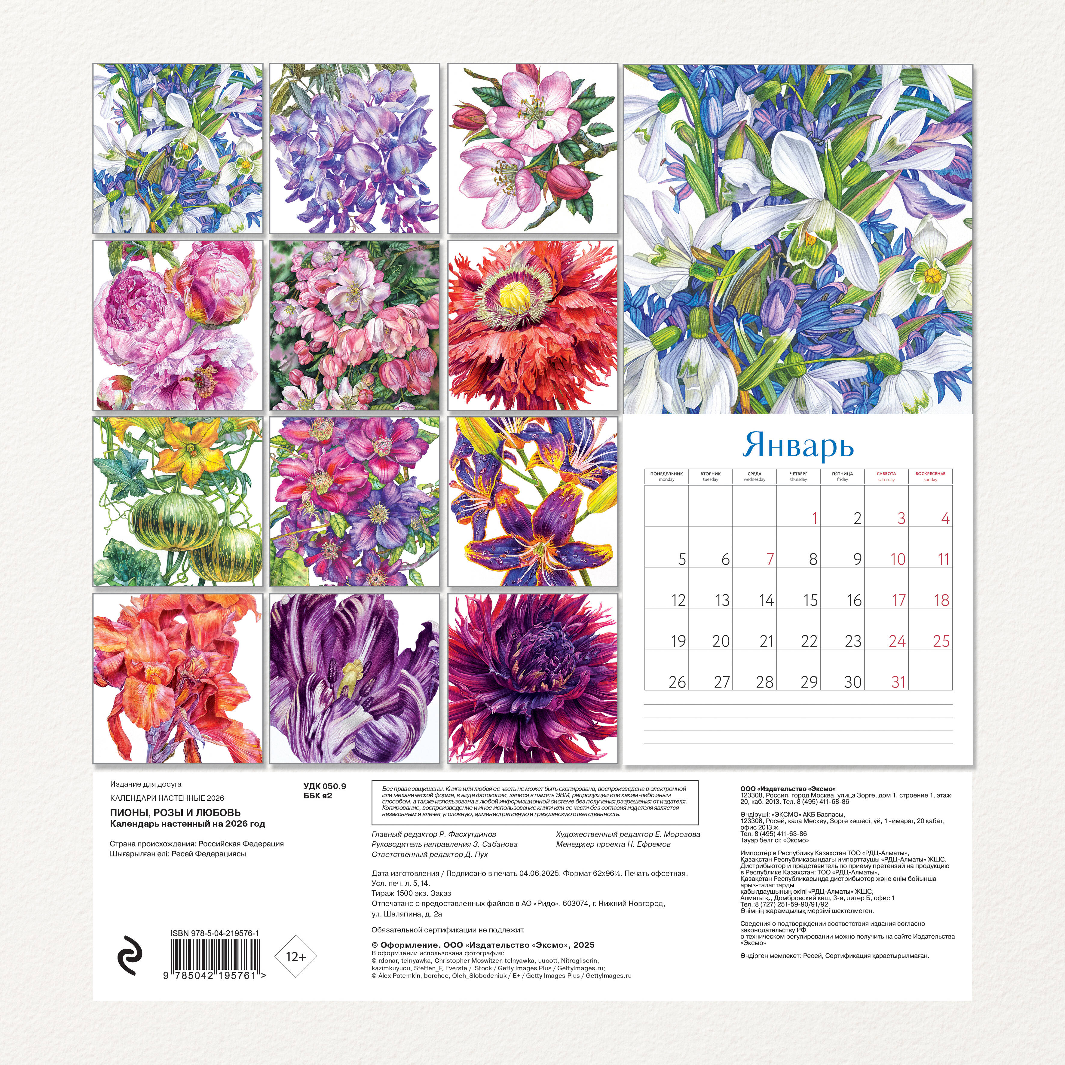 Аннотация: Пионы, розы и любовь. Календарь настенный на 2026 год (300х300 мм)