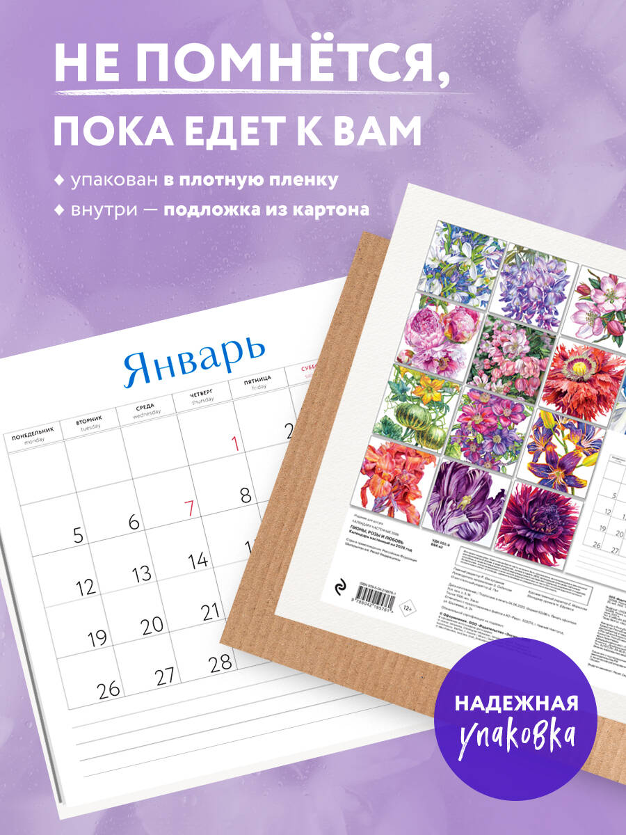 О календаре: Откройте для себя мир красоты и вдохновения, наполненный невероятными соцветиями! Каждый месяц - это уникальный букет красок природы, который поднимет настроение и добавит уюта в ваш дом или офис. Автор иллюстраций - Маргарита Асташова, акварелист с аудиторией более 13 тыс. человек. Ее работы отлично дополняет минималистичная сетка календаря, в которой удобно записывать планы на месяц, а также заметки, идеи и важные мысли. Отличный подарок себе и близкому! О серии: Наши настенные календари отличаются высоким качеством исполнения! Тщательно подобранные иллюстрации, напечатанные на глянцевой бумаге высочайшего качества, станут настоящим украшением дома, а в календарной сетке найдется место для ваших планов: большие клетки позволят делать записи и организовать свой год! В календаре также отмечены все государственные праздники. В серии настенных календарей издательства «ЭКСМО» каждый найдет тему по вкусу: великие художники, великолепные подборки с самыми знаменитыми произведениями искусства, легендарные кинематографические саги и игры, главные книжные авторы и бестселлеры, фотографии и иллюстрации любимых животных и многое-многое другое! Технические параметры: • Тип календаря - настенный перекидной. • Год - 2026. • Календарная сетка - с разбивкой по месяцам. • Вид скрепления - скрепка. • Ширина - 30 см. • Высота - 30 см. • Внутренний блок - мелованная бумага 115 г/м2. • Подложка - плотный гофрокартон для поддержания формы. • Индивидуальная упаковка в плотный целлофановый пакет.| Издательство | ООО "Издательство "Эксмо" |