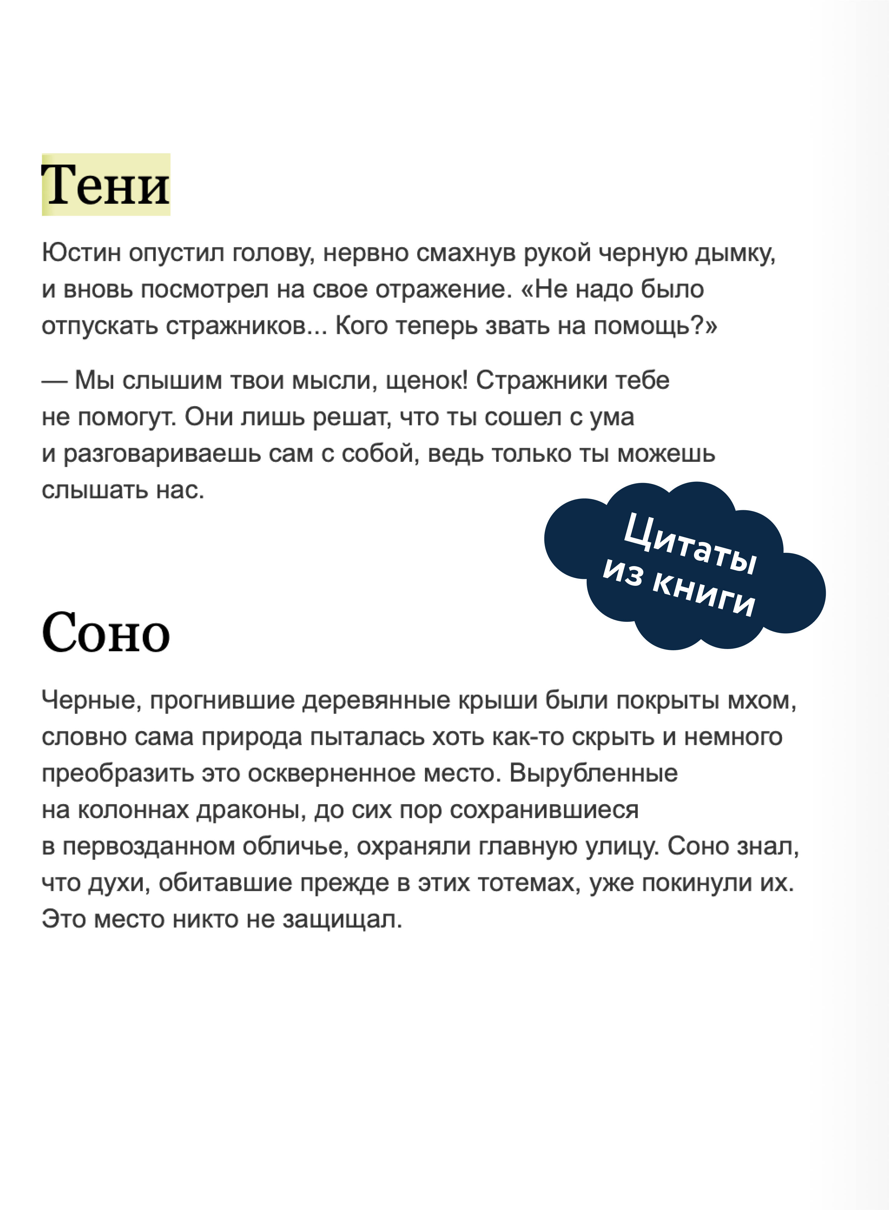 Темное фэнтези о пяти героях, чьи судьбы неожиданно сойдутся воедино. Таинственная и опасная атмосфера, где перемешаны любовь, жажда власти, преданность и месть. Пешка повелителя грешных душ. Травник. Ясновидящая. Выжившая принцесса. Наемный убийца и шпион. Все они жили своей жизнью, но пробудившееся древнее зло не оставило им выбора. Теперь им суждено встретиться и пройти один путь, на котором их ждет лишь тьма. Какие мрачные тайны хранит чужое сердце? Можно ли преодолеть себя и не поддаться соблазнительному шепоту коварных теней?.. Для кого эта книга: Для поклонников темного и стильного фэнтези. Для тех, кто уже читал книгу "Пир теней", но ему не терпится увидеть 4 дополнительные иллюстрации от NamiYammi, которых не было в первом издании. Для тех кто любит авторскую мифологию, мрачную атмосферу, сделки с древними богами и опасные приключения. Для поклонников цикла о гришах Ли Бардуго, книг Джея Кристоффа и Кассандры Клэр.