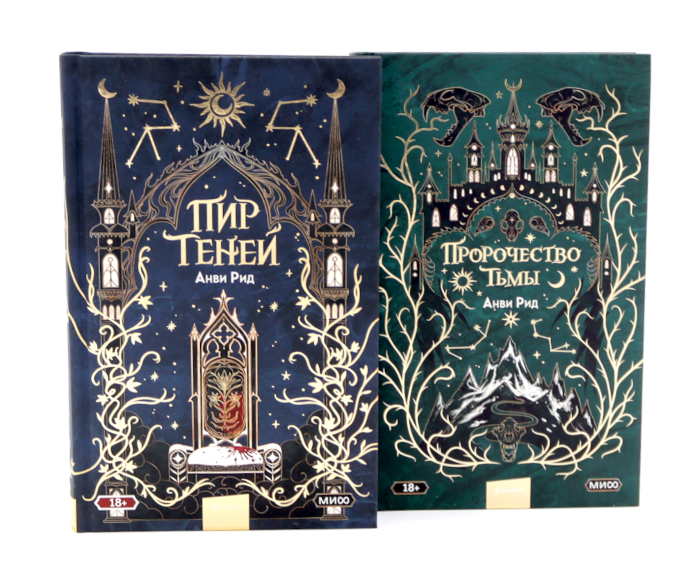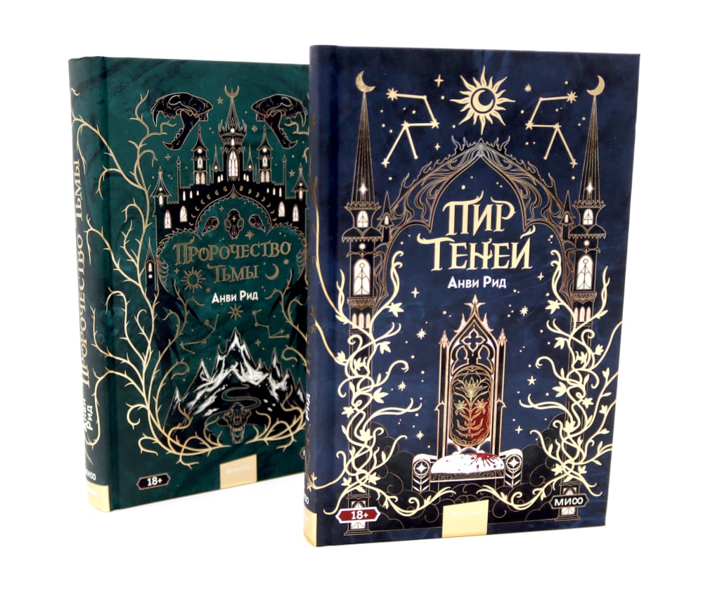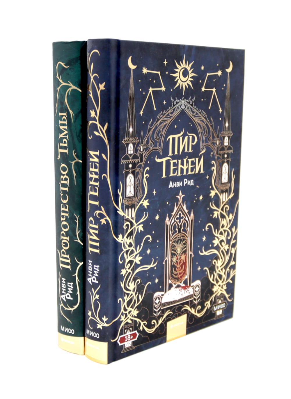 Комплект состоит из двух книг Анви Рид: «Пир теней» и «Пророчество тьмы». В книге «Пир теней» таинственная и опасная атмосфера, где перемешаны любовь, жажда власти, преданность и месть. Пешка повелителя грешных душ. Травник. Ясновидящая. Выжившая принцесса. Наемный убийца и шпион. Все они жили своей жизнью, но пробудившееся древнее зло не оставило им выбора. Теперь им суждено встретиться и пройти один путь, на котором их ждет лишь тьма. Какие мрачные тайны хранит чужое сердце? Можно ли преодолеть себя и не поддаться соблазнительному шепоту коварных теней?.. В книге «Пророчество тьмы» изгнанный олхи вернулся, он жаждет мести... И он уже сделал первый шаг. Голоса теней становятся всё громче, и Юстин уже не в силах противостоять их приказам. Эвон, Далия, Соно и Юри, в надежде сбежать от опасности, лишь быстрее загоняют себя в ловушку безумного короля. Теперь им предстоит с головой окунуться в прошлое, чтобы преодолеть свои страхи и набраться сил для новой битвы. Довериться пугающей старухе-ясновидящей в доме среди снегов, чтобы узнать тайны святых и спасти этот проклятый мир.