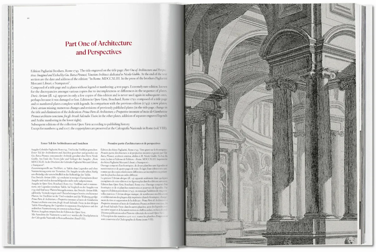 Explore the complete etchings of Giovanni Battista Piranesi, the 18th-century engraver famed for his architectural views of Rome and his imaginary prisons. In this edition, you'll find all the extraordinary detail and fantasy with which Piranesi shaped not only the European image of Italy, but also an impressive artistic legacy, from Edgar Allan Poe to the moving staircases at Hogwarts.| ISBN | 978-3-8365-8761-7 |