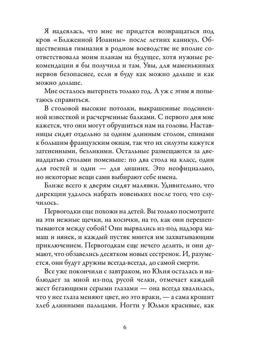 В лесу, окружающем пансион Блаженной Иоанны, находят тело его ученицы, покрытое неизвестными знаками. Подруга погибшей девушки избегает общества одноклассниц, пытаясь выйти из таинственной игры. Однако вскоре после этого пропадает еще одна пансионерка, и становится ясно, что игра продолжается - так или иначе.| Издательство | Т8 RUGRAM |