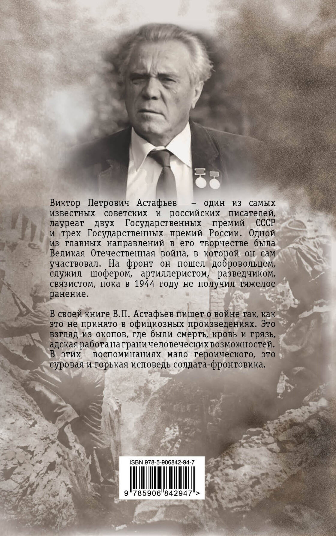 Виктор Петрович Астафьев - один из самых известных советских и российских писателей, лауреат двух Государственных премий СССР и трех Государственных премий России. Особое место в его творчестве занимала Великая Отечественная война, в которой он сам участвовал. На фронт он пошел добровольцем, служил шофером, артиллеристом, разведчиком, связистом, пока в 1944 году не получил тяжелое ранение. В своей книге В.П. Астафьев пишет о войне так, как это не принято в официозных произведениях. Это взгляд из окопов, где были смерть, кровь и грязь, адская работа на грани человеческих возможностей. В этих воспоминаниях мало героического, это суровая и горькая исповедь солдата-фронтовика.| Издательство | ТД Алгоритм ООО |