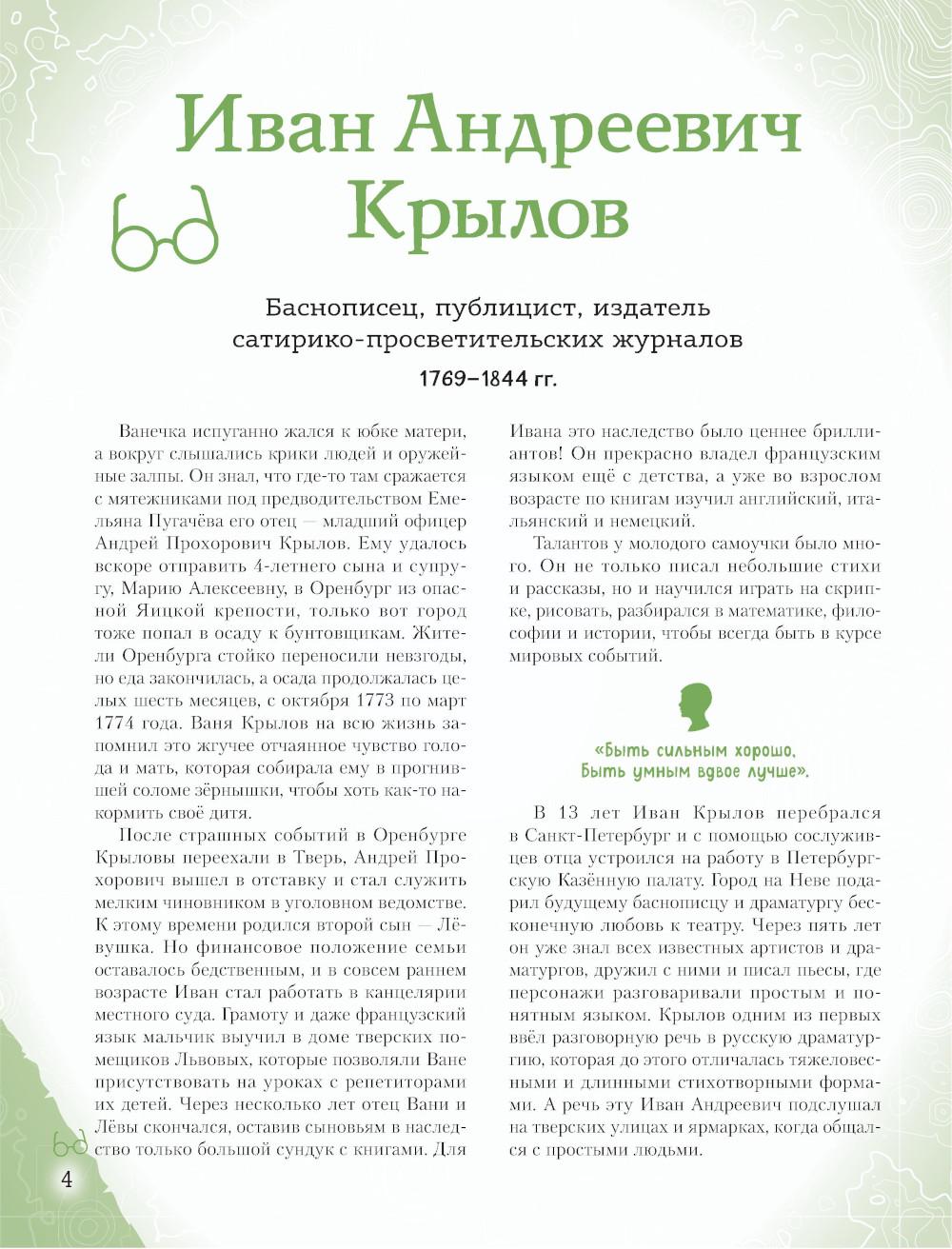Эта книга патриотической серии «Великие люди великой страны» рассказывает о двадцати наших знаменитых соотечественниках - поэтах, прозаиках, баснописцах, публицистах, издателях и драматургах, чьи имена навсегда останутся в истории России. Кто заложил основы современного русского языка? Какой писатель стал лауреатом Нобелевской премии по литературе? Чьи произведения были переведены на 50 языков мира? Захватывающие сюжеты в жанре нарративного нонфикшена, исторических «детективов» и «боевиков»! В каждом рассказе - вдохновляющая читателей на собственные свершения история успеха, невероятный пример силы воли и стойкости характера! Динамичные, запоминающиеся, современные, яркие иллюстрации созданы специально для этой книги! Книги серии получили заслуженно высокую оценку - в 2024 году они были номинированы на премию Российского общества «Знание» в категории «Лучшая просветительская книга». Издание предназначено для среднего школьного возраста, однако будет интересно и взрослым, а также станет неповторимым подарком по любому поводу для всех, кто любит Россию и гордится ею. Читайте всей семьёй и узнавайте всё самое интересное о великих людях нашей страны!| Издательство | Эксмо |