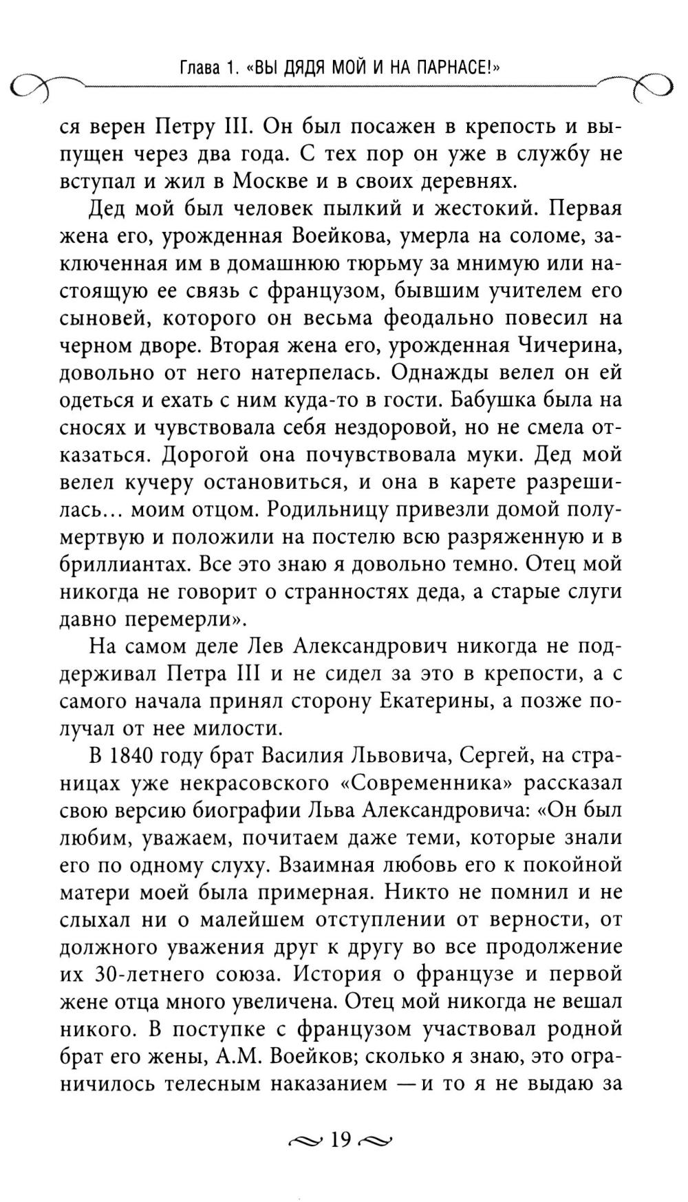 Неизвестно, передается ли талант поэта или писателя по наследству, но как в Средние века существовали знаменитые семьи художников или композиторов, где сын наследовал ремесло отца, так и в России в XIX веке было несколько «писательских» семей. Первый стихотворец, с которым познакомился юный Александр Сергеевич Пушкин, это его дядя, Василий Львович. Незаконнорожденный сын Федора Ивановича Тютчева и его возлюбленной, Елены Александровны Денисьевой, стал романистом. Дочь Достоевского Любовь писала повести. А в семьях Льва Толстого и Чеховых выросли сразу несколько писателей. С одной стороны, родство с великими помогало: они знали и видели, как создаются литературные произведения и то, что это требует немалого труда. С другой стороны, они не могли не сознавать, что живут в тени гениальных родственников, что навсегда останутся дядей, сыном, дочерью или братом «того самого», неповторимого... Тем не менее их судьбы и книги интересны и достойны того, чтобы о них рассказали. Произведения авторов, о которых идет речь в этой книге, это живые документы эпохи, которых не тронул официальный глянец и которые не успели «забронзоветь». Они написаны простыми людьми, похожими на нас. И если эти истории вызвали у вас интерес, значит, русская литература не ограничивается теми именами, которые мы находим в школьном учебнике.| Издательство | Центрполиграф |
