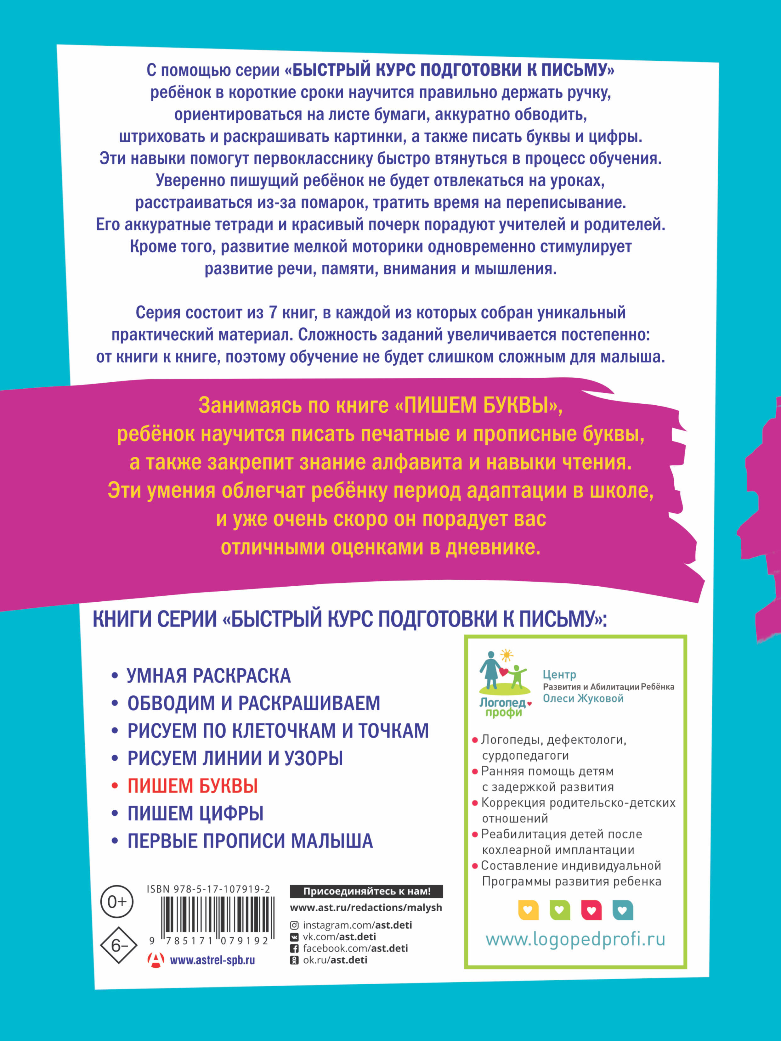 Занимаясь по книге "Пишем буквы", ребенок научится писать печатные и прописные буквы, а также закрепит знание алфавита и навыки чтения. Эти умения облегчат ребенку период адаптации в школе, и уже очень скоро он порадует вас отличными оценками в дневнике. Для дошкольного возраста.| Издательство | Издательство "АСТ" |