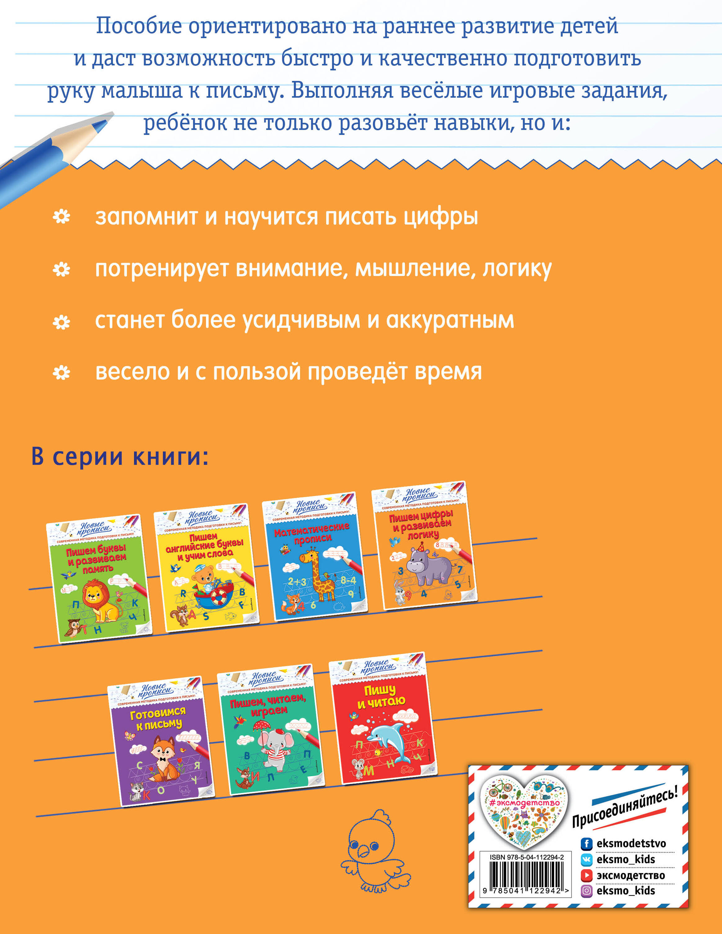 Выполняя задания, построенные по принципу усложнения, ребенок быстро выучит цифры и научится их писать, а также сможет развить логику и мышление, внимание и мелкую моторику. Современная методика подготовки руки к письму предусматривает совмещение нового материала и заданий на закрепление с обучающими играми, чтобы занятия приносили удовольствие. Регулярная работа с книгой поможет довести навыки письма до автоматизма. Приобретая это пособие для своего ребенка, вы поможете ему: • научиться ровно и красиво писать цифры; • стать более усидчивым и аккуратным; • интересно и с пользой провести время.| Издательство | ООО "Издательство "Эксмо" |