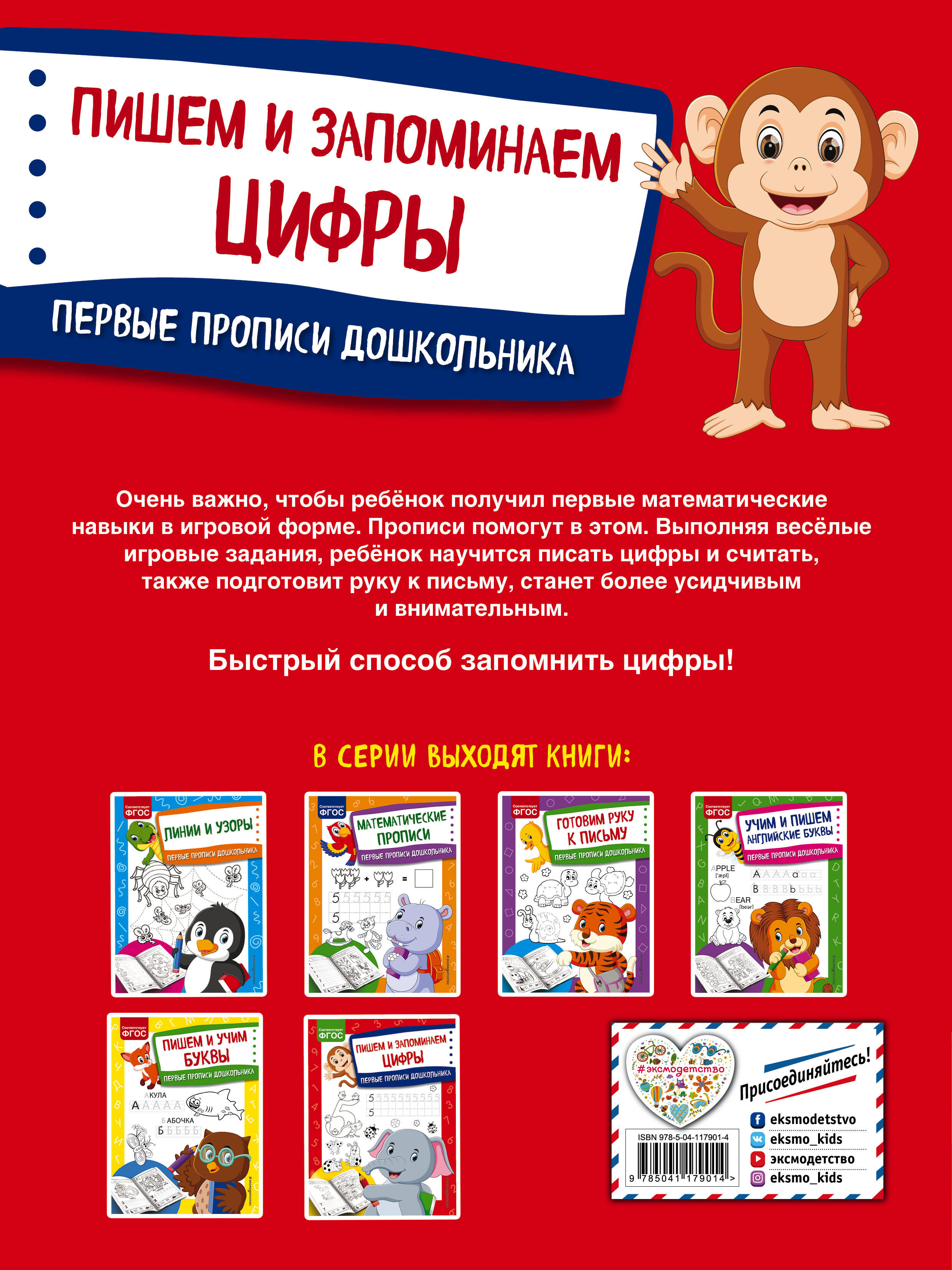 Цель пособия, соответствующего ФГОС - помочь дошкольнику освоить первый счет. Выполняя интересные игровые задания, ребёнок будет запоминать цифры, обводить их по контуру, писать в строчках самостоятельно, считать. Весёлые крупные картинки понравятся любому малышу, и он получит от своей деятельности огромное удовольствие. Кроме того, внизу каждой страницы имеются значки для оценки выполненных заданий. Поставив галочку в клетках «да» или «нет», малыш сможет проконтролировать себя, а нарисовав ротик у смайлика вверх или вниз - оценить результат (хорошо / не очень хорошо). Регулярная работа с пособием поможет ребёнку развить мелкую моторику и графические навыки. Пособие поможет ребёнку: • развить графические навыки; • запомнить цифры; • получить первые навыки счёта; • научиться писать цифры; • развить навыки самоконтроля и самооценки; • стать усидчивым и внимательным.| Издательство | ООО "Издательство "Эксмо" |