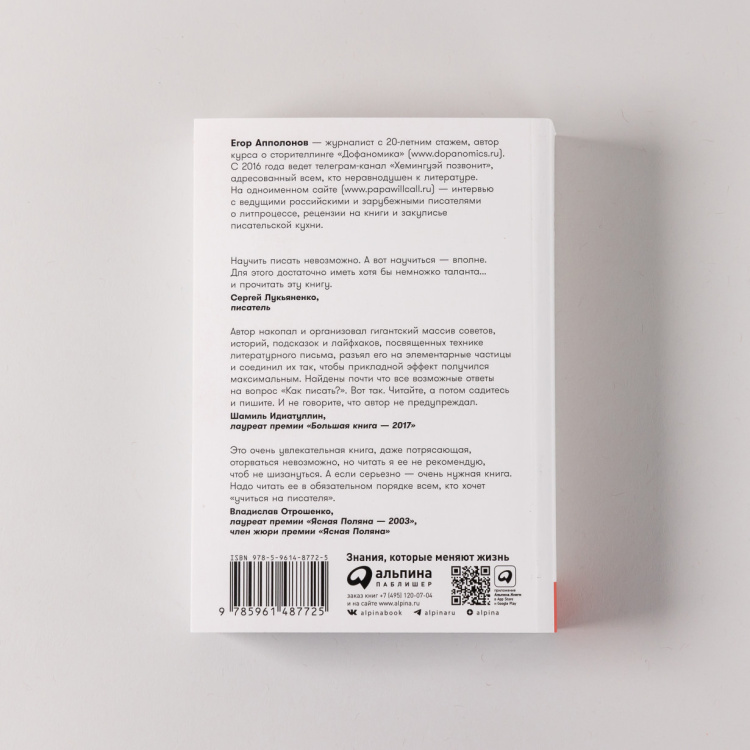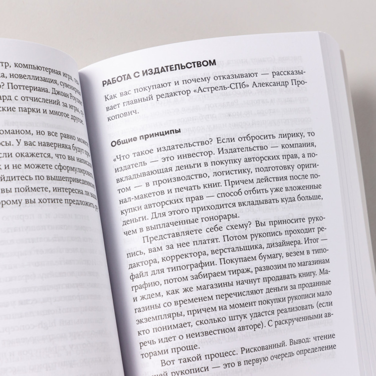 - В книге множество советов и цитат из интервью, книг, писем классиков и выдающихся писателей современности. Диалоги с российскими и зарубежными авторами во второй части книги - это возможность узнать о непростой работе писателя из первых рук, понять, как найти свой писательский голос и какие подводные камни встречаются на пути к изданию книги.