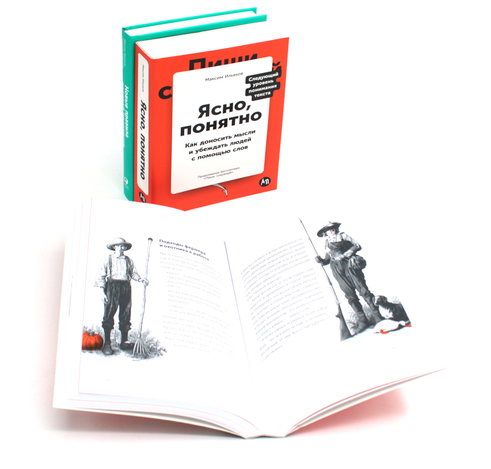 В комплект вошли книги: Ильяхов Максим, Сарычева Людмила "Пиши, сокращай" Максим Ильяхов и Людмила Сарычева на конкретных примерах показывают, что такое хорошо и что такое плохо в информационном, рекламном, журналистском и публицистическом тексте. Как писать письма, на которые будут отвечать, и рассылки, от которых не будут отписываться. Как создавать действенные и не вульгарные рекламные объявления. Как излагать мысли кратко, ясно и убедительно, без языкового мусора, фальши и штампов. Следуя рекомендациям в книге, вы научитесь писать понятно, увлекать читателей и добиваться доверия. Это обязательная книга для копирайтеров, авторов, редакторов, дизайнеров, программистов, менеджеров, предпринимателей, руководителей, служащих и всех, кто использует текст в работе. Ильяхов Максим, Сарычева Людмила "Новые правила деловой переписки" Последние двадцать лет нас учили, что деловая переписка - это бесконечные реверансы, бессмысленные формы вежливости и вымученные шаблоны: «Коллеги, я вас услышал», «Клиент прислал правочки, внесите АСАП. Заранее спасибо», «С уважением к вам и вашему бизнесу». Современное деловое письмо - это махровая фальшь, копеечные манипуляции и плохо скрываемое обоюдное презрение. Максим Ильяхов и Людмила Сарычева, авторы культовой книги «Пиши, сокращай», предлагают менять культуру делового письма и выдвигают два новых правила: уважение к адресату и забота о его интересах. Письма, составленные по таким правилам, располагают к вам людей и помогают находить общий язык. Следуя рекомендациям из книги, вы научитесь писать коммерческие предложения, сопроводительные письма, просьбы коллегам, ответы клиентам и любые другие рабочие письма. Это обязательная книга для всех, кто пишет по работе: руководителей, менеджеров, специалистов и соискателей. Ильяхов Максим "Ясно, понятно" Эта книга о правильной и понятной коммуникации: как с помощью слов доносить свои мысли и влиять на людей. Максим Ильяхов развивает тему, затронутую в бестселлере «Пиши, сокращай». Вы узнаете, как привлечь внимание читателей, как помочь им понять и принять точку зрения автора, как увлекательно и доступно раскрыть любую тему, даже самую сложную. Вы найдете в книге более 50 инструментов улучшения текста. В разделе «Контекст» автор покажет, как справиться с предвзятостью читателей и настроить их на верное восприятие информации. В разделе «Интерес» - как превратить скучный текст в увлекательный, не меняя его содержания. Раздел «Текст» посвящен использованию примеров, антипримеров, аналогий, метафор, сюжетности и слоганов - тому, что поможет адресату правильно понять написанное вами. В разделе «Подача» представлены инструменты мгновенного воздействия: как донести главное заголовком, схемой или фотографией. Максим Ильяхов рассказывает о создании сильного текста, подкрепляя теорию примерами из собственной практики. Книга адресована всем, кто уже умеет писать и сокращать, но хочет делать это лучше - так, чтобы не только информировать, но и убеждать словом, - копирайтерам, маркетологам, бизнес-тренерам, предпринимателям и блогерам.| Издательство | Альпина Паблишер |