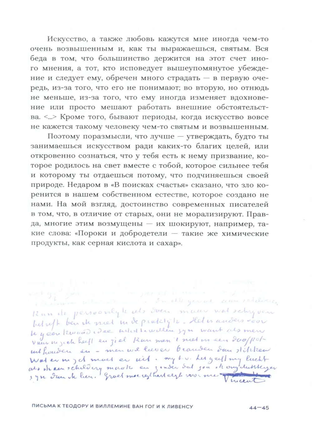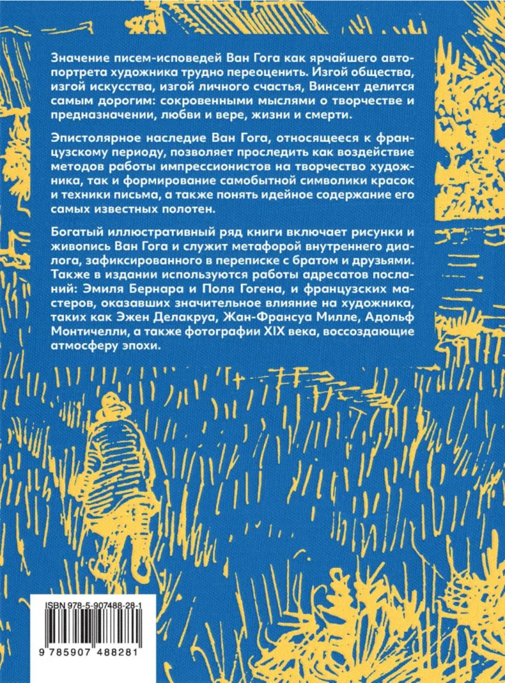 Значение писем-исповедей Ван Гога как ярчайшего автопортрета художника трудно переоценить. Изгой общества, изгой искусства, изгой личного счастья, Винсент делится самым дорогим: сокровенными мыслями о творчестве и предназначении, любви и вере, жизни и смерти. Эпистолярное наследие Ван Гога, относящееся к французскому периоду, позволяет проследить как воздействие методов работы импрессионистов на творчество художника, так и формирование самобытной символики красок и техники письма, а также понять идейное содержание его самых известных полотен. Богатый иллюстративный ряд книги включает рисунки и живопись Ван Гога и служит метафорой внутреннего диалога, зафиксированного в переписке с братом и друзьями. Также в издании используются работы адресатов посланий: Эмиля Бернара и Поля Гогена, и французских мастеров, оказавших значительное влияние на художника, таких как Эжен Делакруа, Жан-Франсуа Милле, Адольф Монтичелли, а также фотографии XIX века, воссоздающие атмосферу эпохи.| Издательство | Иллюминатор |