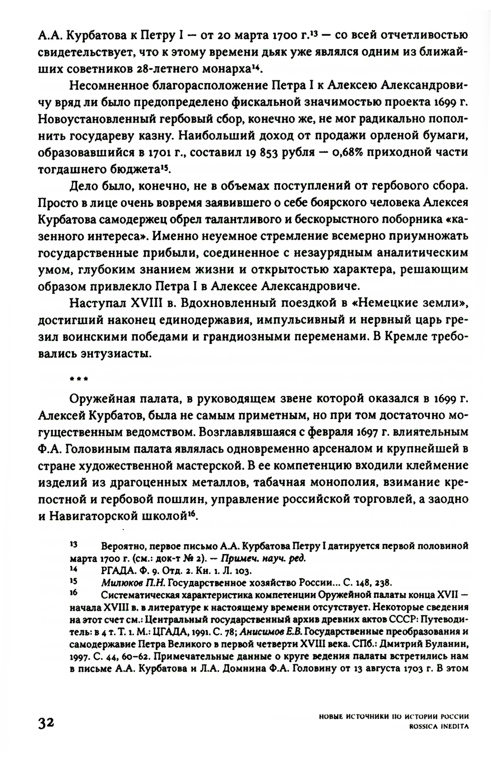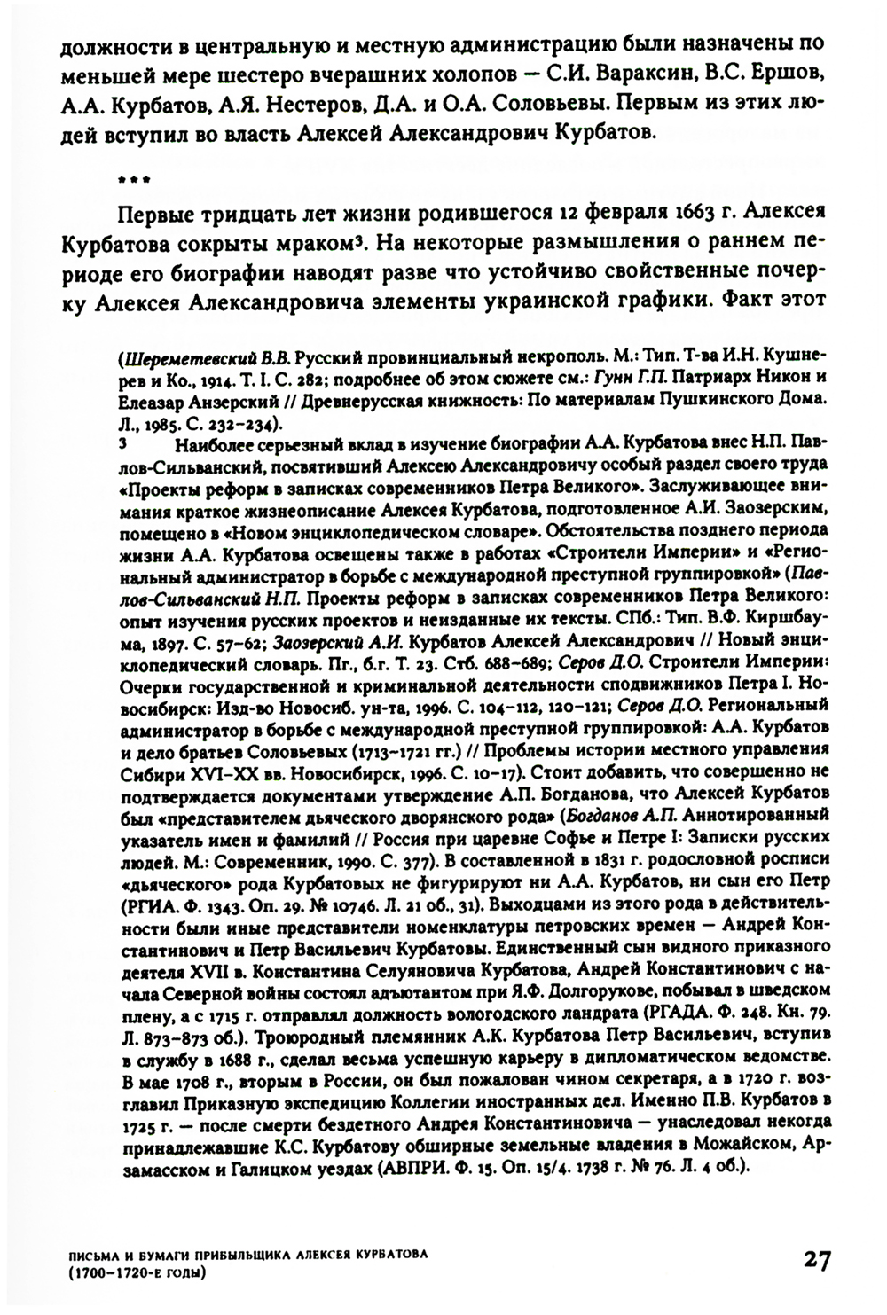 Аннотация: Письма и бумаги прибыльщика Алексея Курбатова (1700-1720-е годы)
