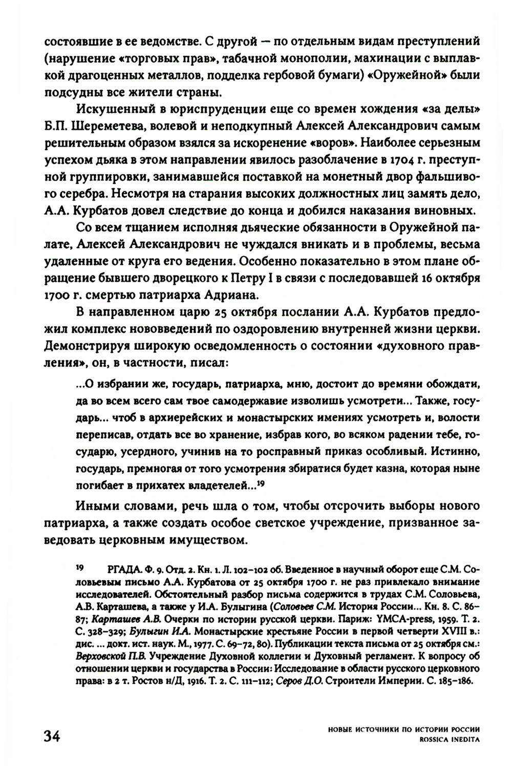 В очередной книге серии впервые собраны вместе документы Алексея Александровича Курбатова (1663-1721). самого яркого из прибыльщиков петровского времени, бывшего боярского слуги, который стал «изобретателем» целого ряда ключевых реформ, управлял Архангельской губернией и закончил жизнь под следствием. Издание включает письма Курбатова Петру I и некоторым ведущим деятелям Петровской эпохи, предлагавшиеся Курбатовым проекты реформ, материалы его следственного дела и другие документы, многие из которых публикуются впервые. В двух вводных статьях подробно рассматривается биография Курбатова и его государственная деятельность. Книга адресована историкам, культурологам, филологам, а также широкому кругу читателей.| Издательство | ИД Высшей школы экономики |