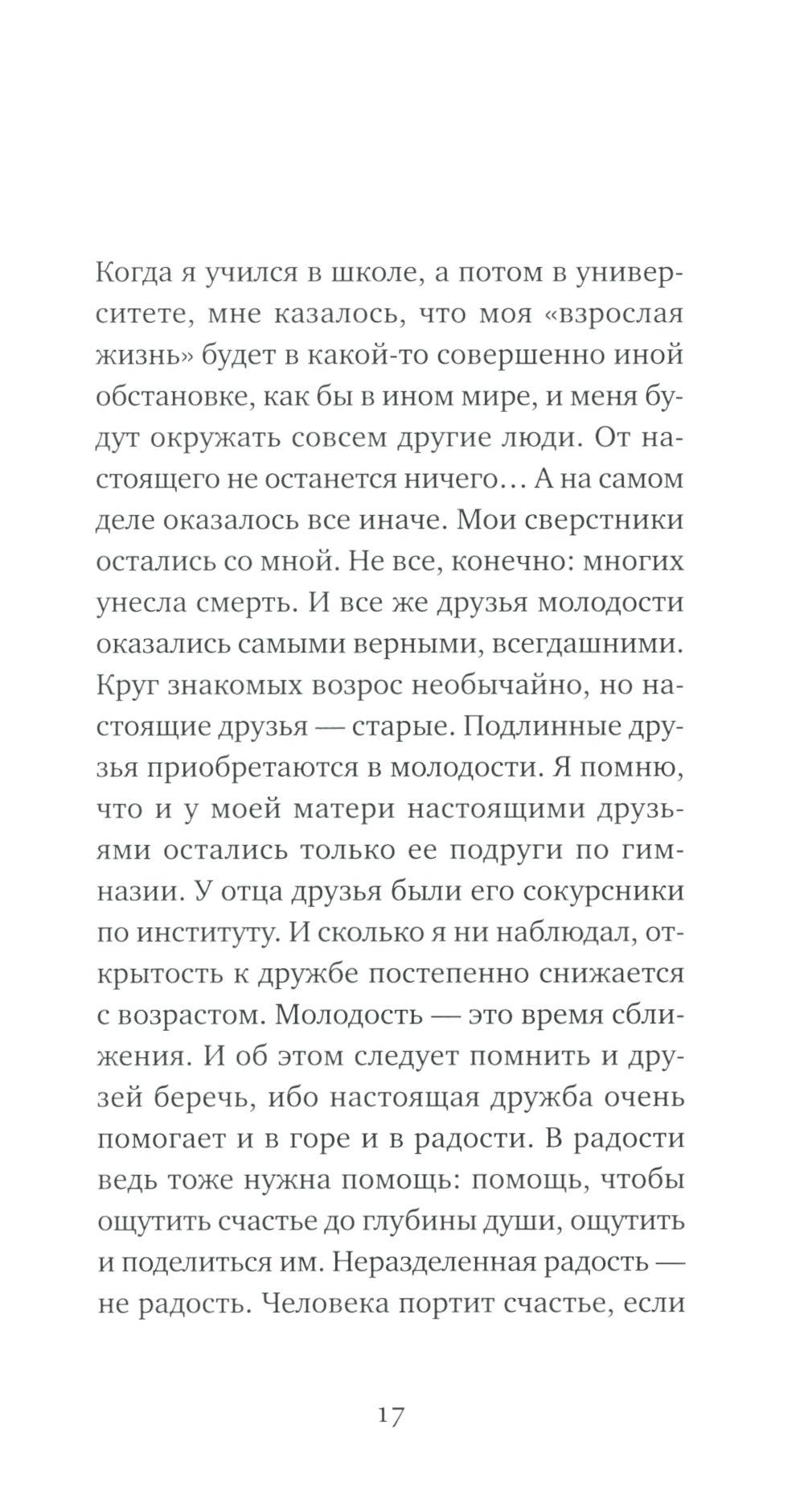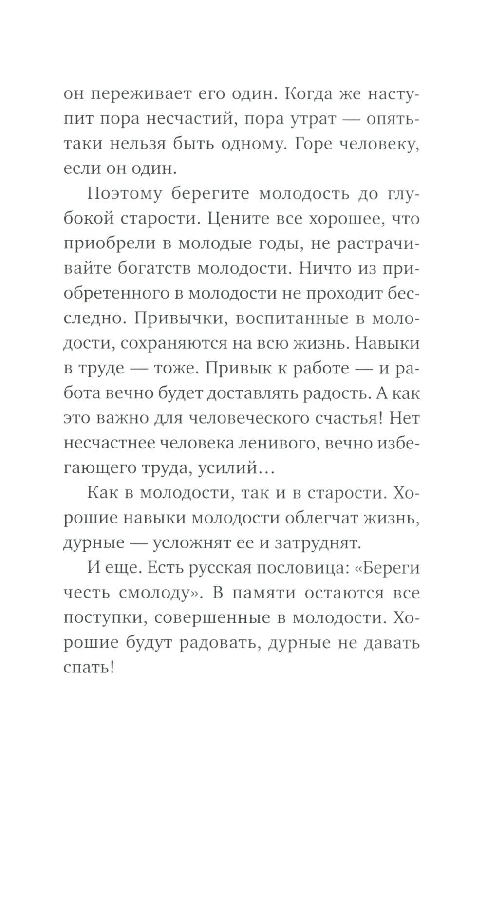 Это лишенные морализма и пафоса, оформленные в виде коротких писем размышления доброго и мудрого человека о необходимости саморазвития, формировании правильной системы ценностей, избавлении от жадности, зависти, обидчивости, ненависти и о воспитании в себе любви к людям, понимания, сочувствия, смелости и умения отстаивать свою точку зрения.| Издательство | Альпина Паблишер |