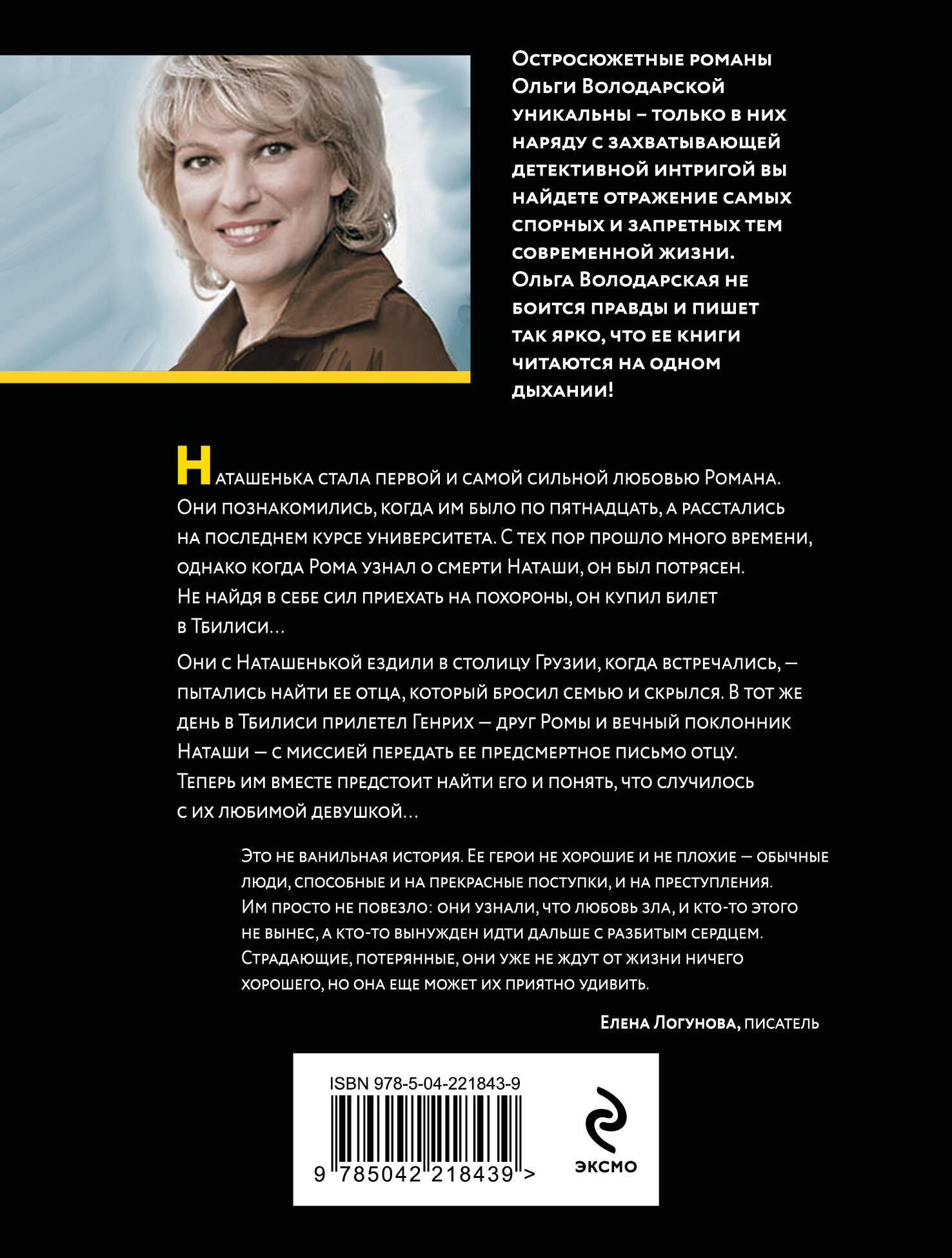 Наташенька стала первой и самой сильной любовью Романа. Они познакомились, когда им было по пятнадцать, а расстались на последнем курсе университета. С тех пор прошло много времени, однако когда Рома узнал о смерти Наташи, он был потрясен. Не найдя в себе сил приехать на похороны, он купил билет в Тбилиси… Они с Наташенькой ездили в столицу Грузии, когда встречались - пытались найти ее отца, который бросил семью и скрылся. В тот же день в Тбилиси прилетел Генрих - друг Ромы и вечный поклонник Наташи - с миссией передать ее предсмертное письмо отцу. Теперь им вместе предстоит найти его и понять, что случилось с их любимой девушкой… Романы Ольги Володарской - остросоциальные детективы, в которых автор препарирует все стороны жизни современного общества, ничего не скрывая и ни о чем не умалчивая. Ее книги написаны так увлекательно, что оторваться просто невозможно. Яркий сочный язык и блестящий авторский стиль создают неповторимую атмосферу, в которую с головой погружается читатель.| Издательство | ООО "Издательство "Эксмо" |
