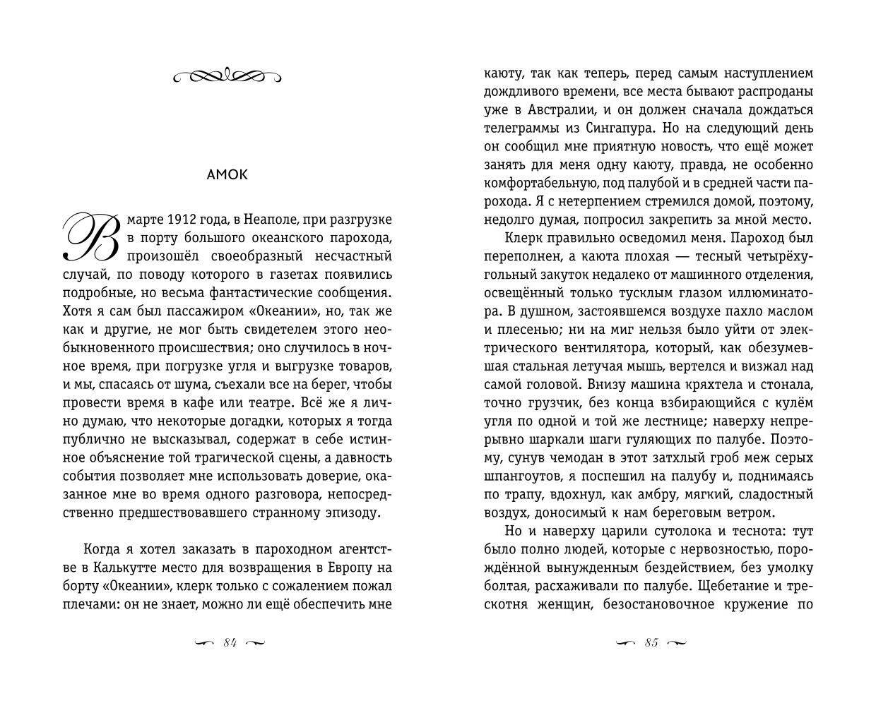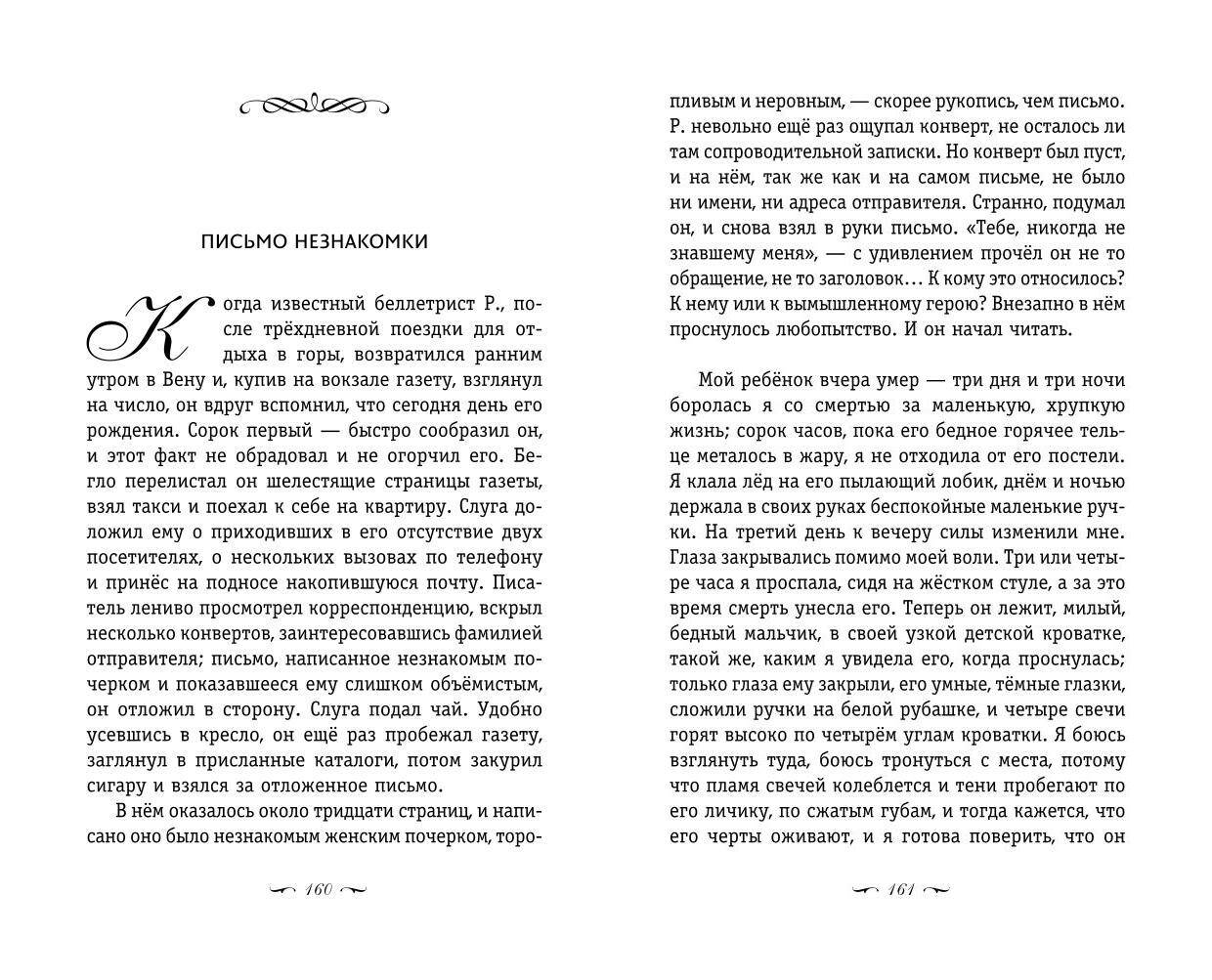Изящная серия идеально подойдёт тем, кто при выборе издания обращает внимание не только на проникновенное содержание, но и на изысканное оформление. Книга компактного формата в твёрдом переплёте. Оригинальный дизайн, тактильная обложка с тканевой фактурой. Белая бумага, удобный для чтения шрифт. Книги этой серии вызывают ассоциации с «прекрасной эпохой» и становятся тем необходимым элементом, который, почти по совету Коко Шанель, должен быть в сумочке каждой женщины. Чтобы всегда чувствовать себя уверенно, выглядеть элегантно и раскрывать свою уникальность. Состав серии порадует любителей искренних и глубоко волнующих романов. В серию вошли лучшие романтические произведения мировой литературы в переводах признанных мастеров. Это «Гордость и предубеждение», «Маленький принц», «Страдания юного Вертера», «Портрет Дориана Грея», «Великий Гэтсби», а также жемчужины русской классики - «Мастер и Маргарита», любовная лирика Сергея Есенина и Александра Пушкина. Эти книги проникают в глубины человеческой души и исследуют каждое движение трепещущего сердца. В книгу вошли знаменитые новеллы классика европейской литературы Стефана Цвейга: «В сумерках», «Гувернантка», «Летняя новелла», «Амок», «Письмо незнакомки», «Улица в лунном свете», «Двадцать четыре часа из жизни женщины», «Незримая коллекция», «Лепорелла». Их объединяет динамичное повествование и предельно точное исследование всех граней любви: от бескорыстной преданности до одержимости.