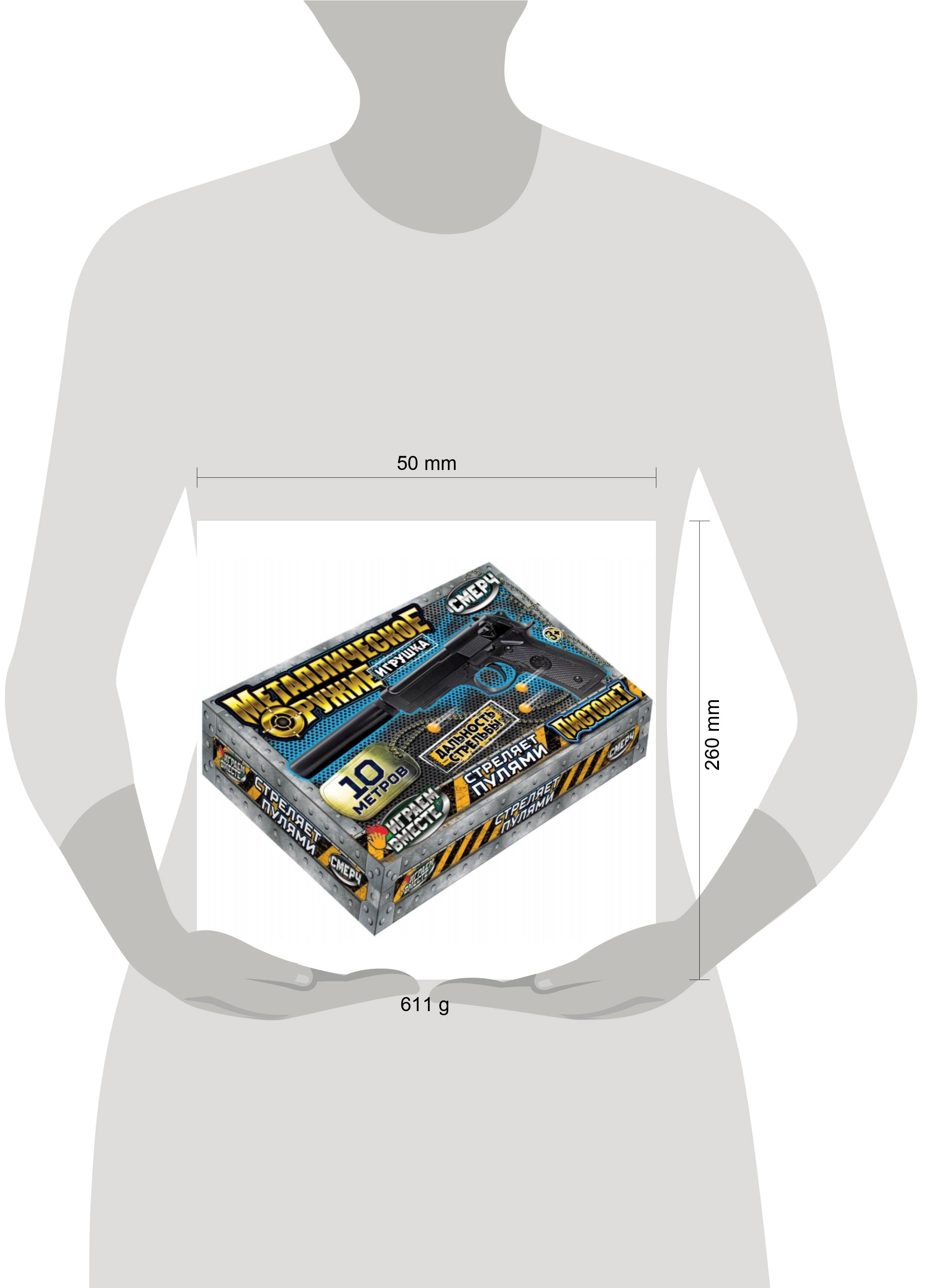 Пневматический пистолет "Смерч" ТМ "Играем вместе" непременно понравится юному герою: - реалистичный дизайн - удобно держать в руках - пневматический - стреляет пулями - дальность стрельбы 10 м С этим игровым оружием ваш ребёнок будет придумывать увлекательные спецзадания, защищать мир и стоять на страже порядка. С таким пистолетом маленький герой станет самым метким стрелком. Игровое оружие идеально подойдёт для активных игр. Игры с оружием ТМ "Играем вместе" помогут развить: - координацию движений - воображение - ловкость и меткость - внимание - моторику Размер: 26 х 12 х 5 см. Материал: металл + пластмасса. Рекомендовано детям от 3-х лет.
